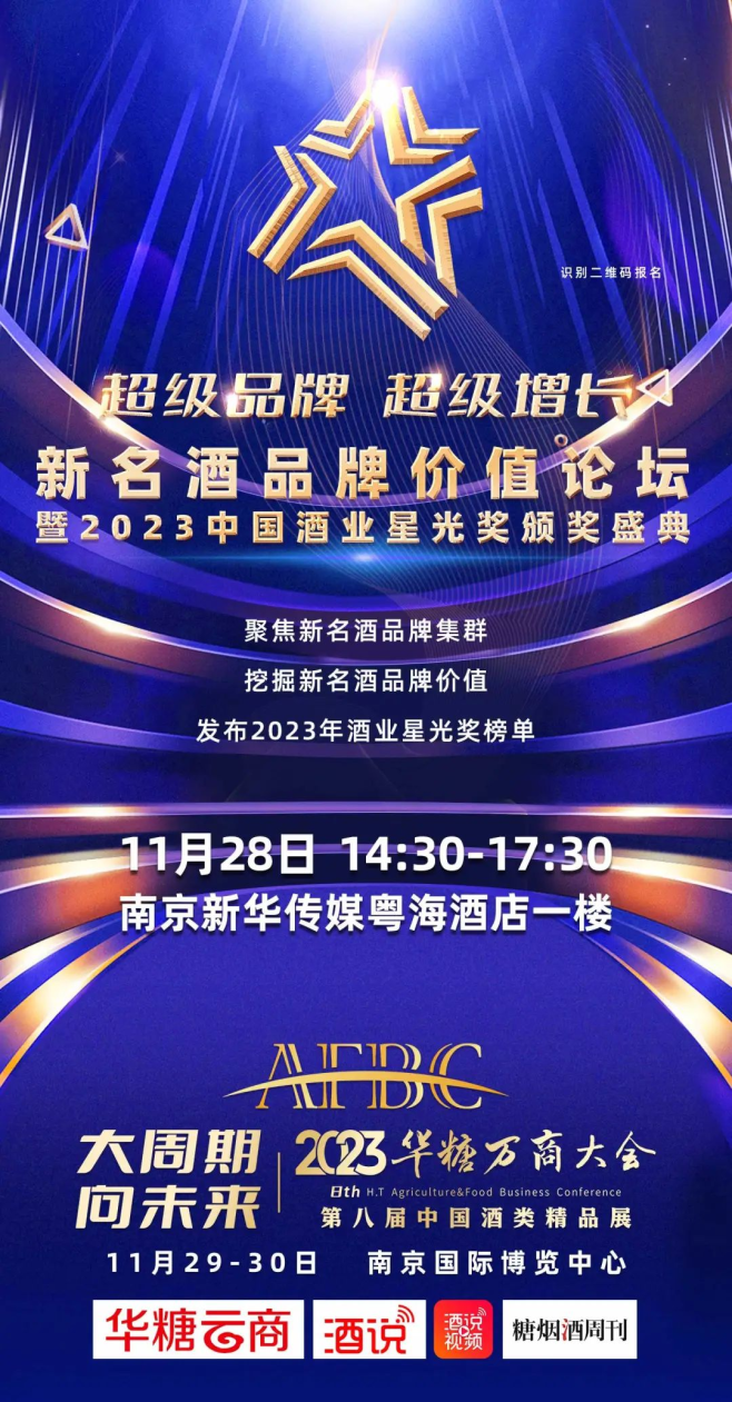 经过综合评定阶段之后,2023中国酒业星光奖颁奖盛典将于11月28日14:30,在南京新华传媒粤海酒店一楼翔宇厅,“超级品牌 超级增长”新名酒品牌价值论坛上同期举办。