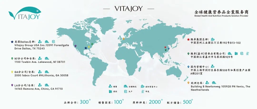 江苏维卓健康集团成立于2005年,总部位于苏州,是一家全球专业营养健康产品解决方案公司。维卓健康集团可提供健康原料甄选、原料定制、配方开发设计、OEM/ODM加工,跨境贸易的全球一站式服务。经18年的发展壮大,维卓健康集团在美国 、荷兰、苏州 、上海,嘉兴等国家和地区成立子公司,业务遍布全球五大洲。维卓健康集团以优质的服务,专业的技术及卓越的产品品质赢得客户和业界认可,维卓健康集团致力成为新时代营养健康产业的形象标杆企业。