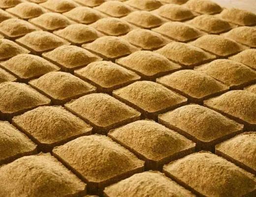 制曲过程主要使用纯小麦以及少量的水和曲,人工踩制成砖块状的大曲,特点是周围低、中间高,形似“龟背”。踩制完成后需放入曲房中,培养四十天之后,才算制作完成。经储存半年以上后,才能直接使用。酱酒制曲过程中,“曲芯”的温度需要达到65°,因此也称为“高温大曲”。高温下,曲块会培养出比较明显的酱香。此外,酱酒还有一个特殊的“堆曲”过程,即减少翻曲次数。酱酒的曲,它的糖化发酵率会比清香型大曲的转化率要低,但是曲香会更浓郁纯正。浓香型白酒是市场上最多的一种白酒香型,不同地区的浓香白酒,环境各异,其制曲工艺也有细微区别,酿造出多种多样风格的酒体。与酱香型白酒不同的是,浓香型白酒采用的是中高温制曲,要求制曲过程中温度保持在50°--59°之间。中高温条件下制作的酒曲,保留了较多的香味物质,酿造出来的酒体丰满、芳香浓郁。