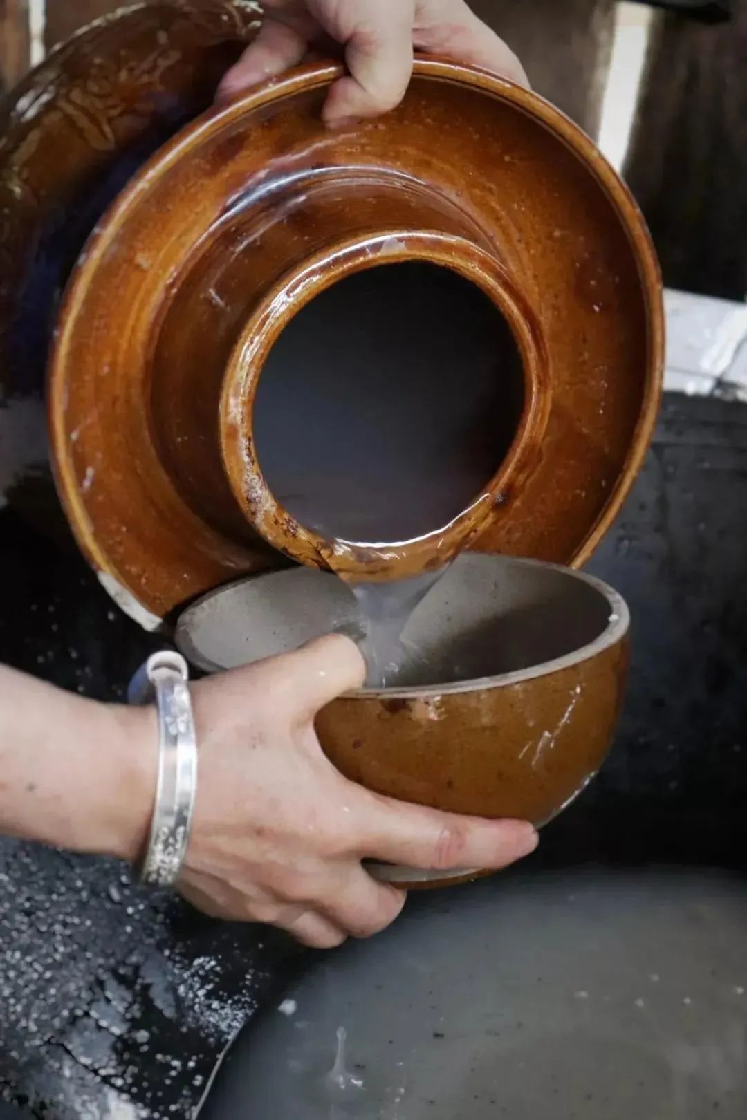 在新中国解放之前,多数人温饱都难以保证的岁月里,以这种繁富工艺制作,甚至用到很多食材的器皿,显然有着更大的作用——装酒滴酒不漏,装水挥失殆尽。