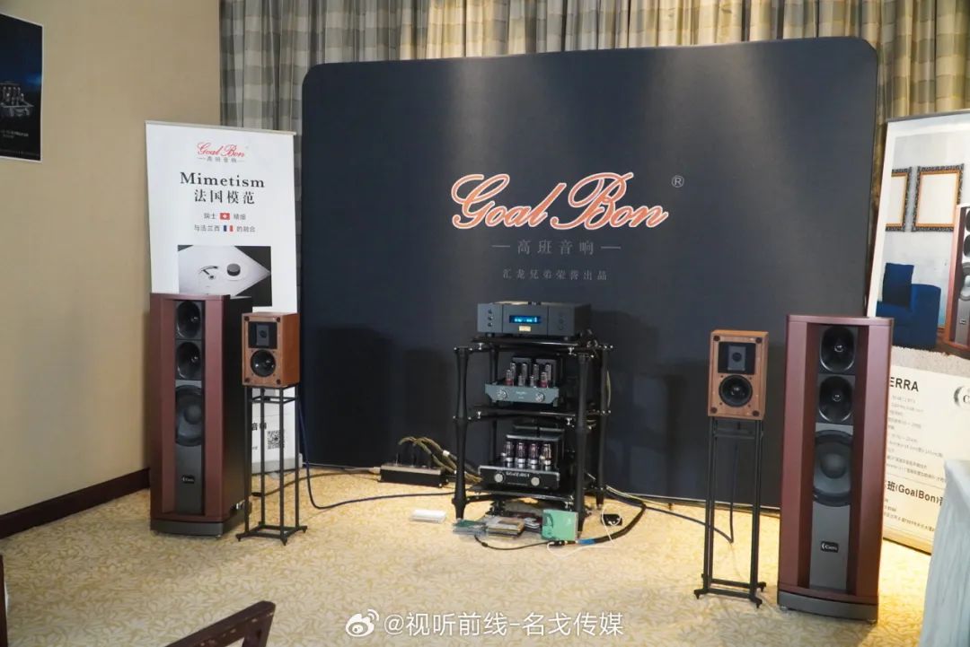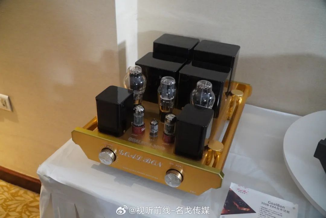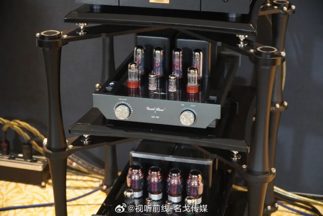 GoalBon高班胆机是近年崛起的品牌。本次展会高班的胆机搭配英国斯特林音箱、法国模范CD机作现场演示,其中LS-35合并机是专为经典音箱LS-3/5A而制,专门有11欧的输出绕组。