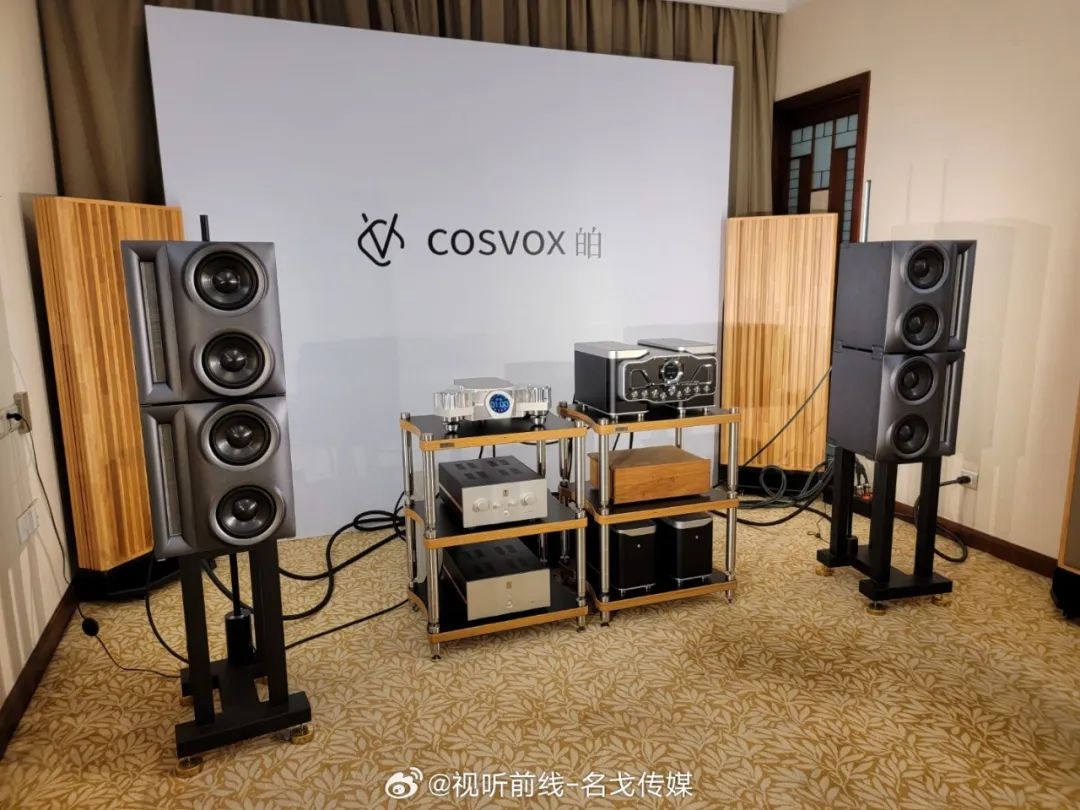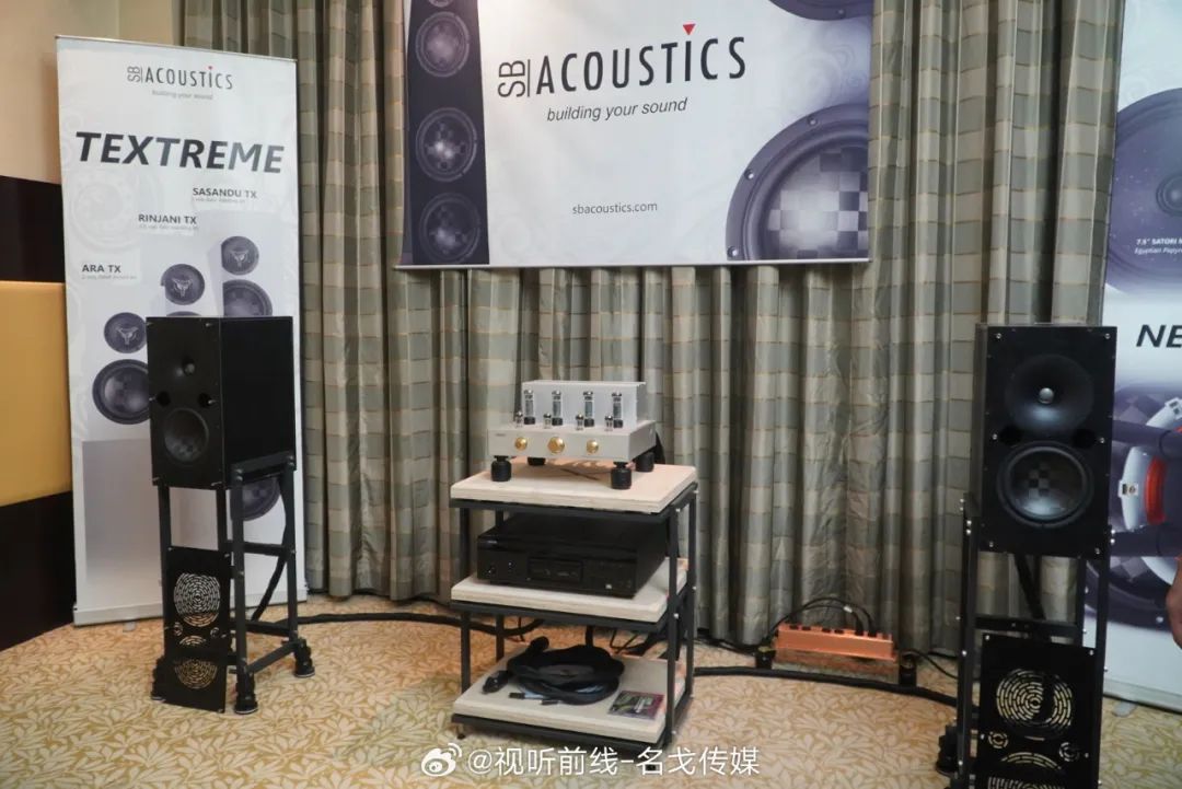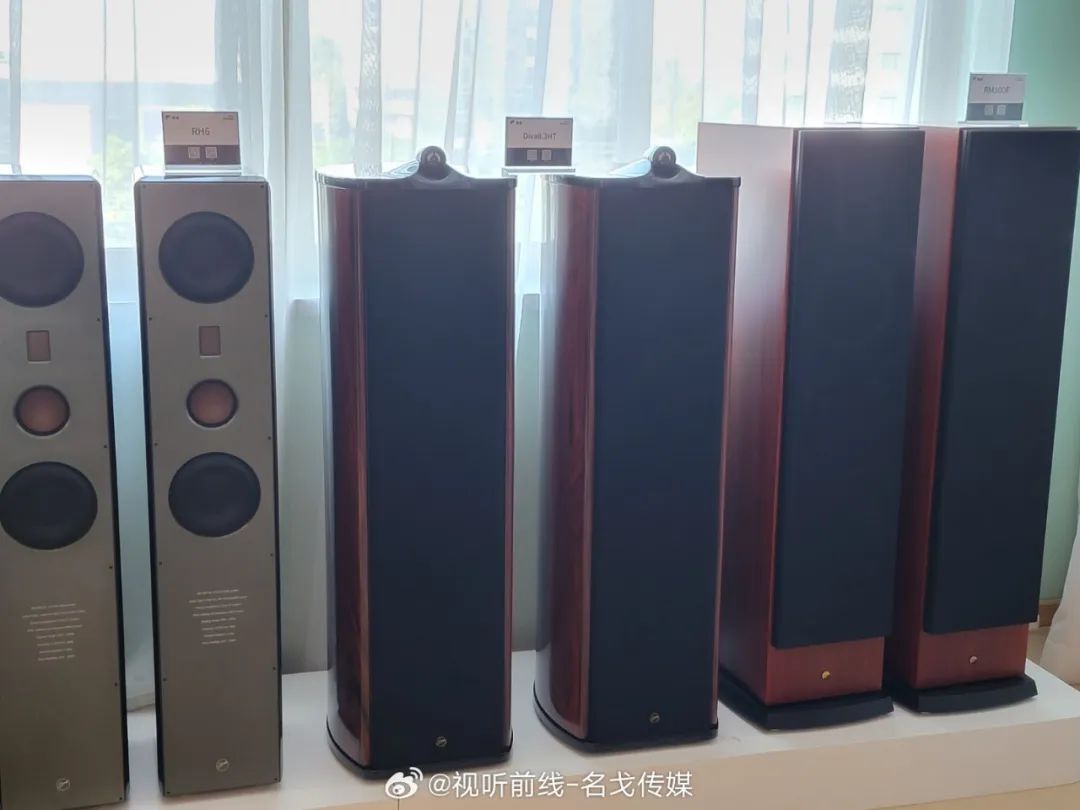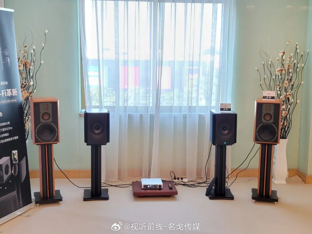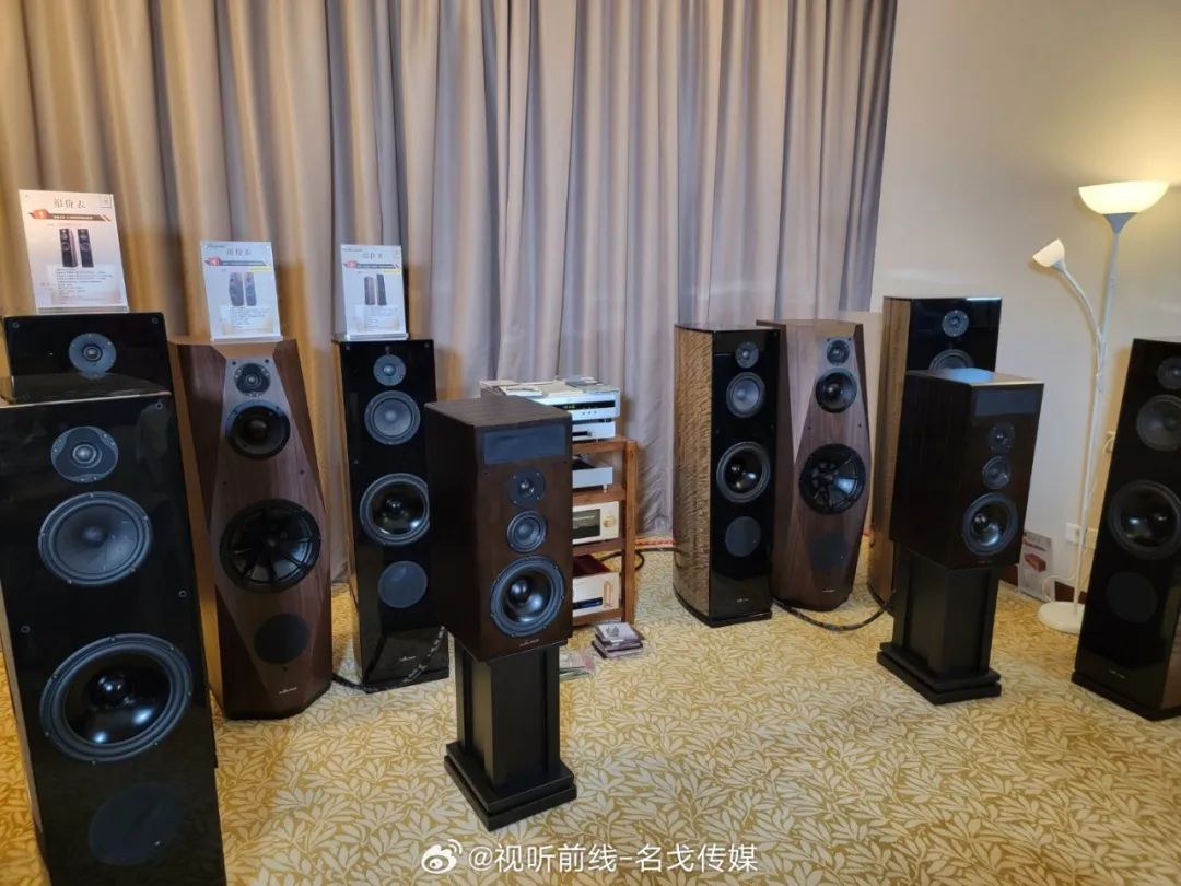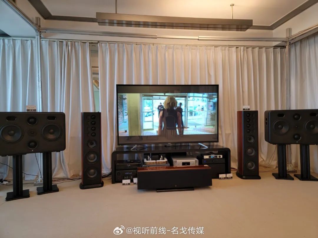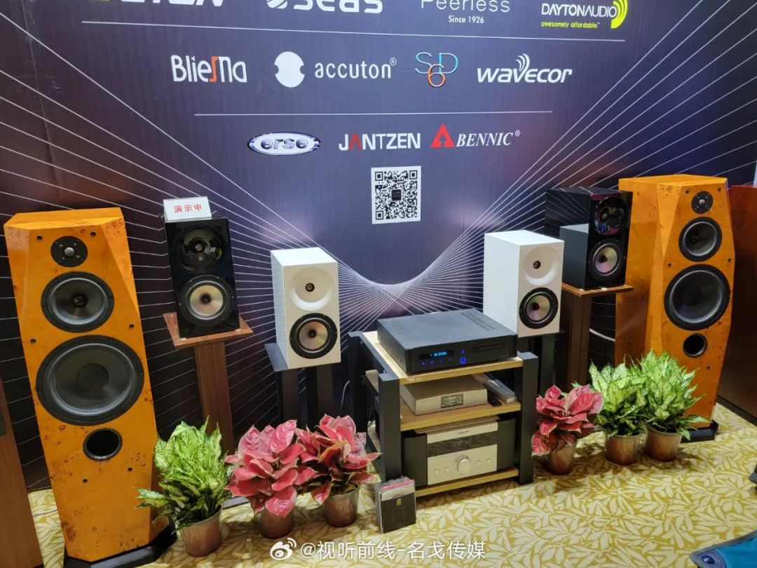广州歌美声带来多个品牌音响产品展示,SEAS单元,丹麦三角音响Cornered C5音箱的影院演示。