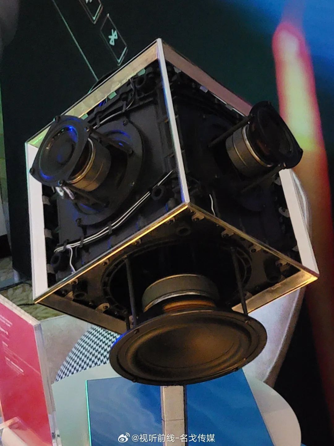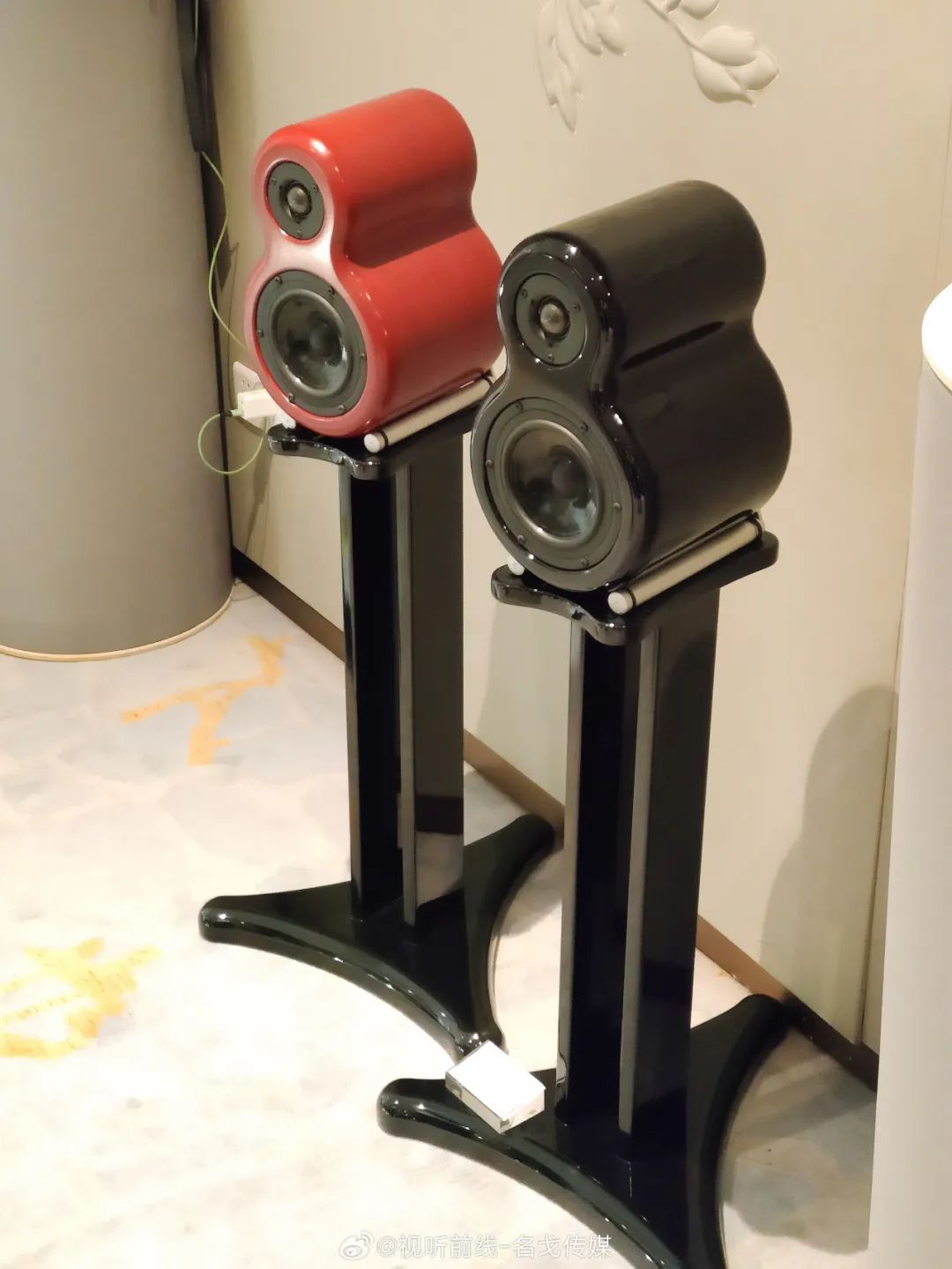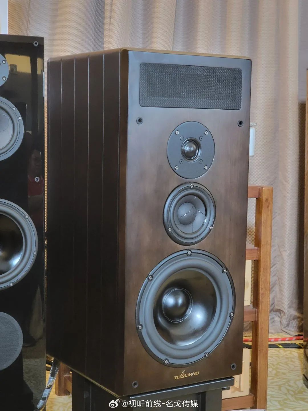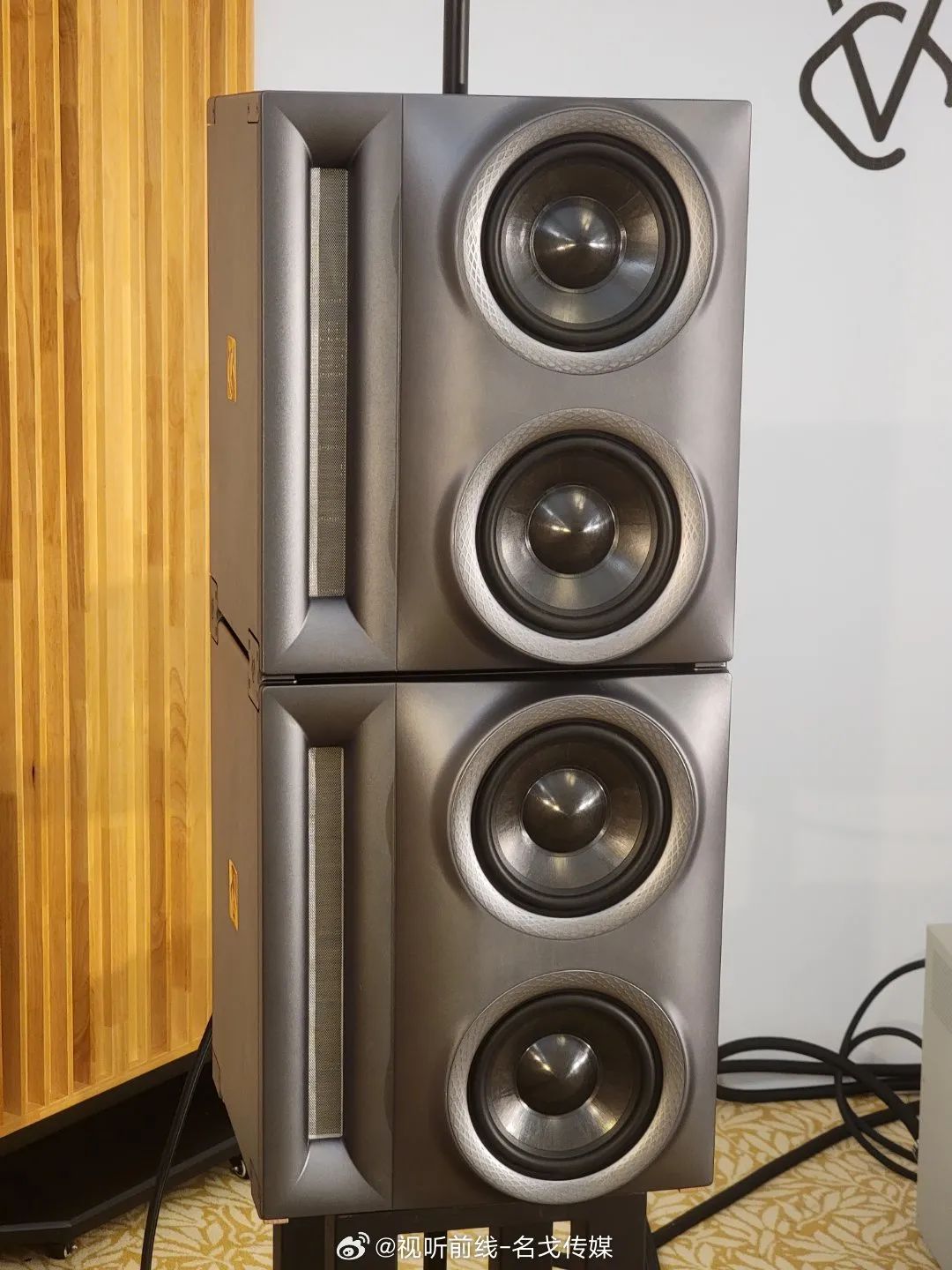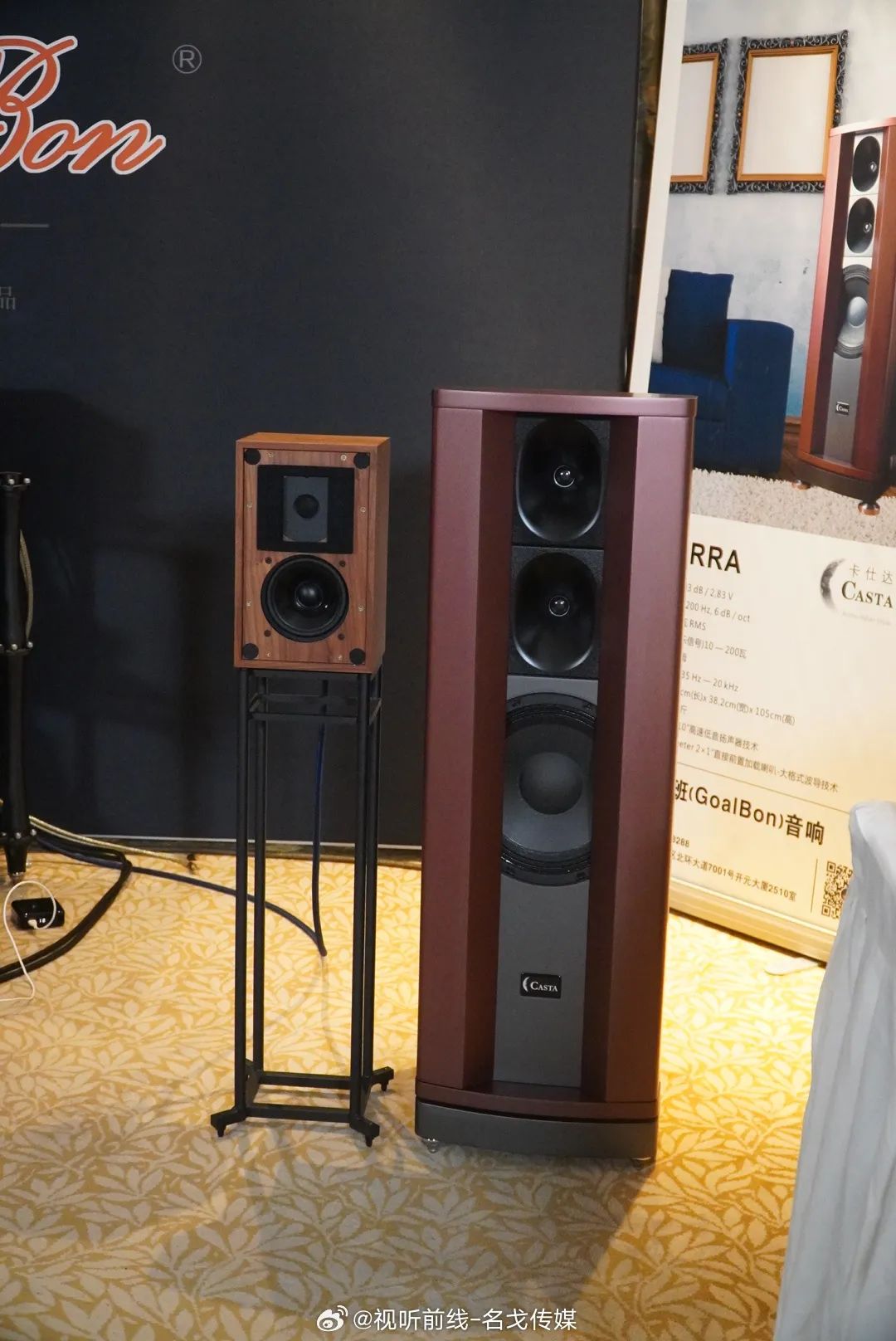 广州歌美声带来多个品牌音响产品展示,SEAS单元,丹麦三角音响Cornered C5音箱的影院演示。