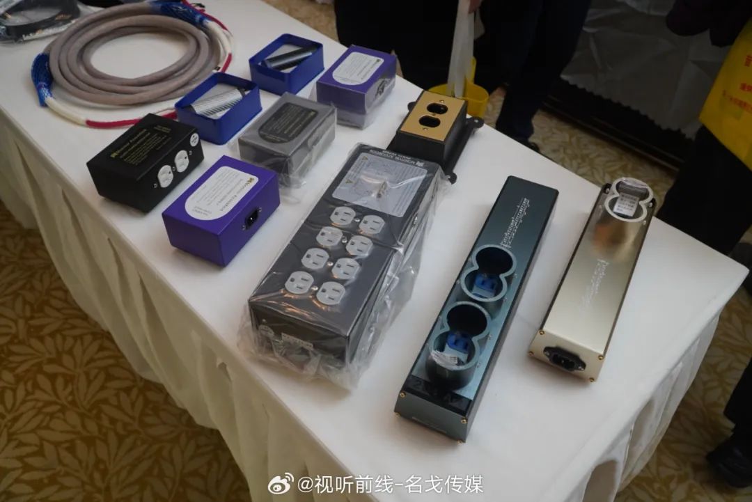 雅士音响带来了台湾静神的各类电源产品,现场联合富盛音响展出了F&F的石头箱和文杰工作室的蓝牙接收器作演示。