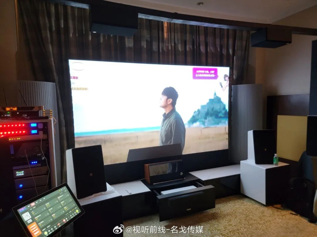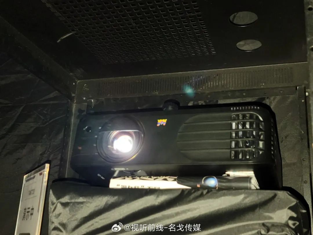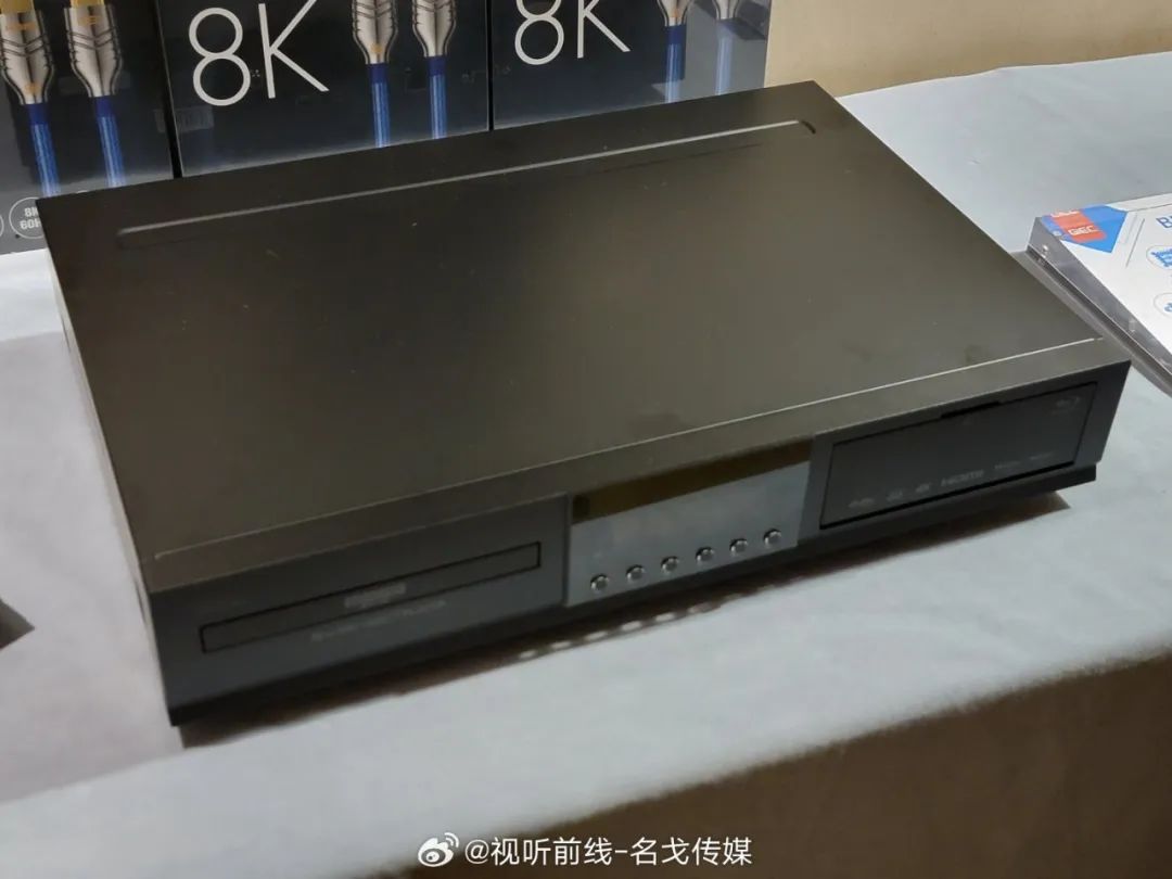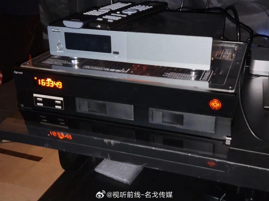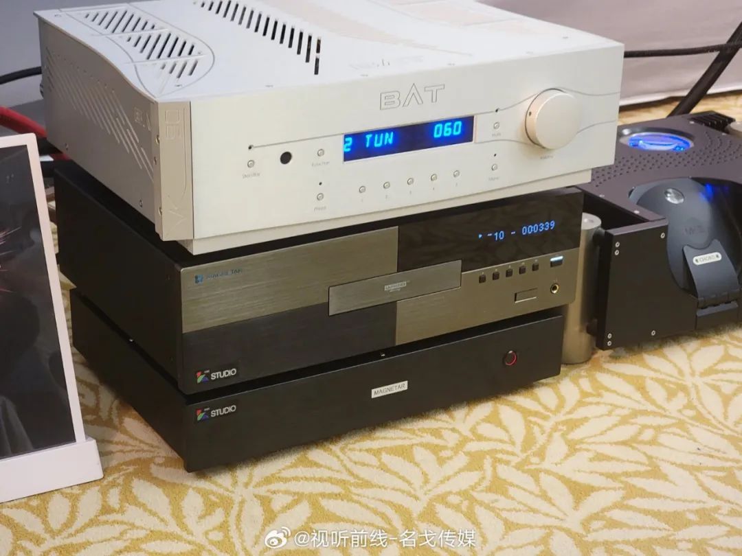 Magnetar(麦尼塔)的展房展出了UDP900、UDP800等蓝光机产品,搭配Perlisten(佰俪声)的音箱、JVC投影机进行影院示范。