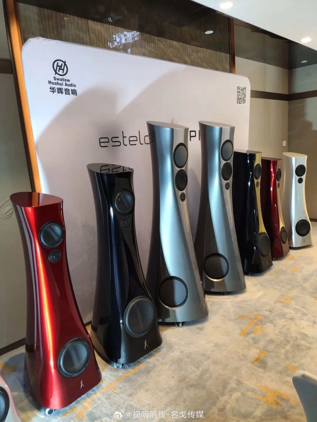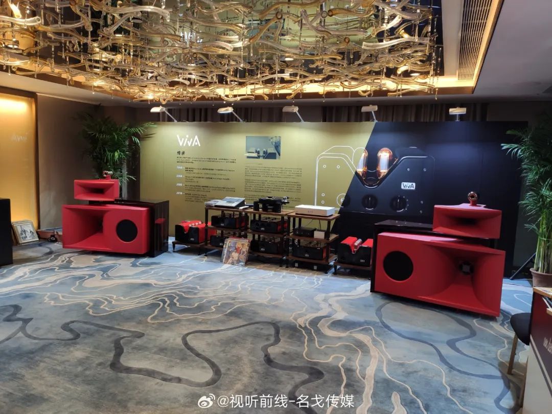 华晖音响在中酒二楼的钻石厅演示意大利Viva Audio Nuda号角扬声器系统,珊瑚厅则是爱沙尼亚Estelon最新款旗舰音箱Estelon Extreme Mk II,搭配希腊PILIUM AUDIO出声。