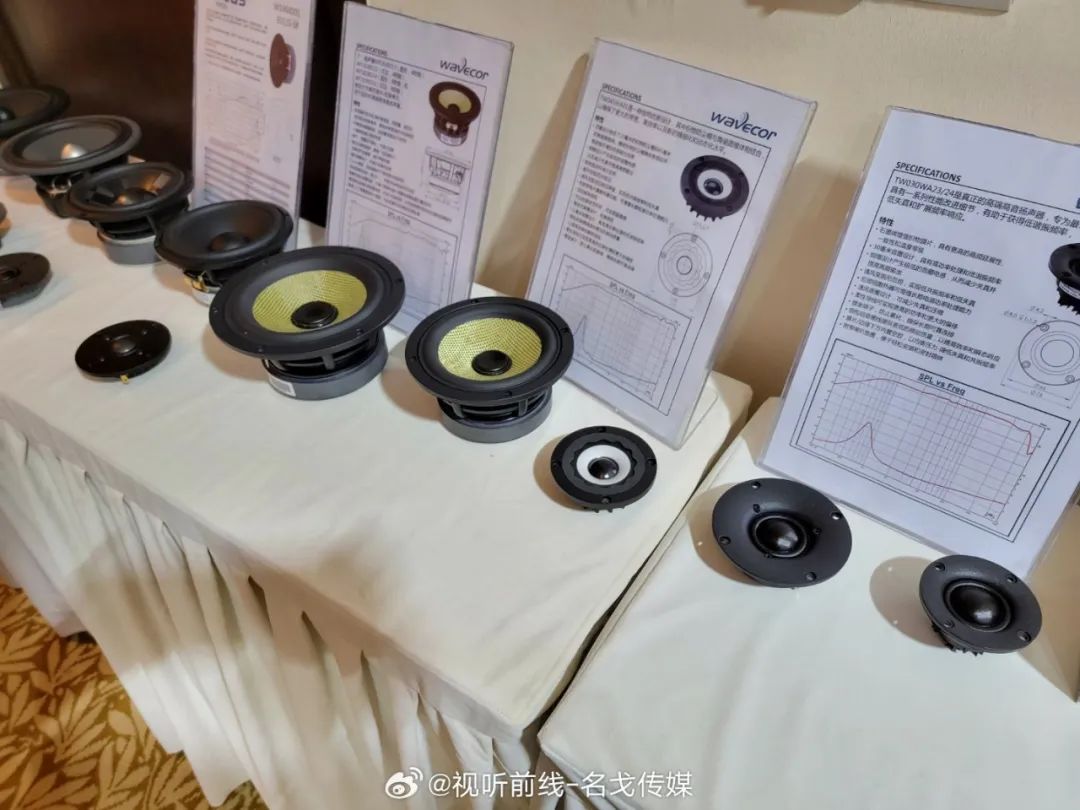 傲士音响带来了旗下代理的多个喇叭单元品牌的产品,包括有ScanSpeak绅士宝、morel魔雷、VOLT、SBAcoustic 等等。