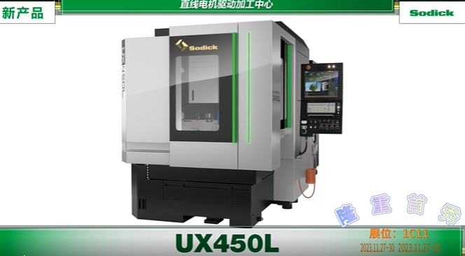 Sodick 最新研发产品,高精高速加工中心UX450L首次登陆中国,搭载Sodick自研数控系统、直线电机,以达到持久稳定的高精度高速加工。