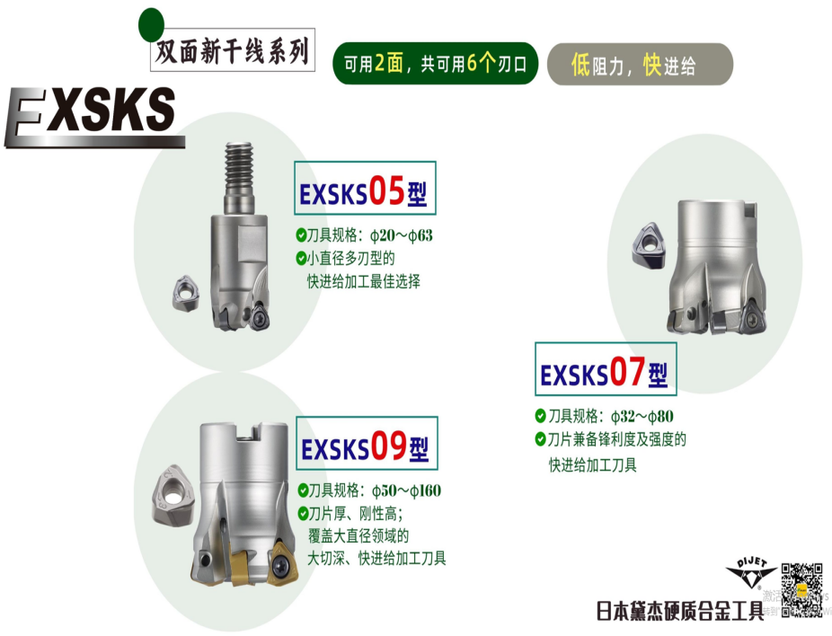 3)φ20~φ63备有可换头型、端铣刀杆型及刀盘型,应对不同加工需求;