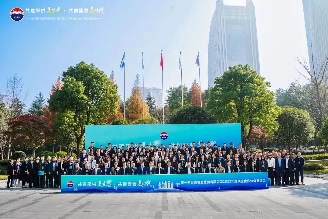 贵州茅台酱香酒营销有限公司与其122 家供应商合作伙伴代表,相聚一堂,以共建采供美生态·共创酱香美时代为主题,共商供应高质发展新路径,共同推动建设供应体系美的未来。