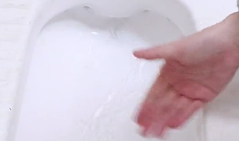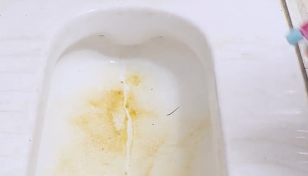 第二个用途,可以有效去除马桶面黄渍。可以看到马桶里面有很多的黄色污垢,直接将香烟、白酒、水的溶液喷洒进去,让它静置两分钟,