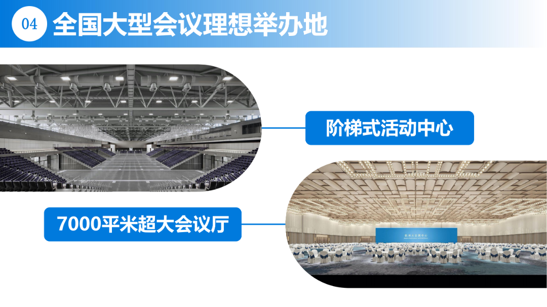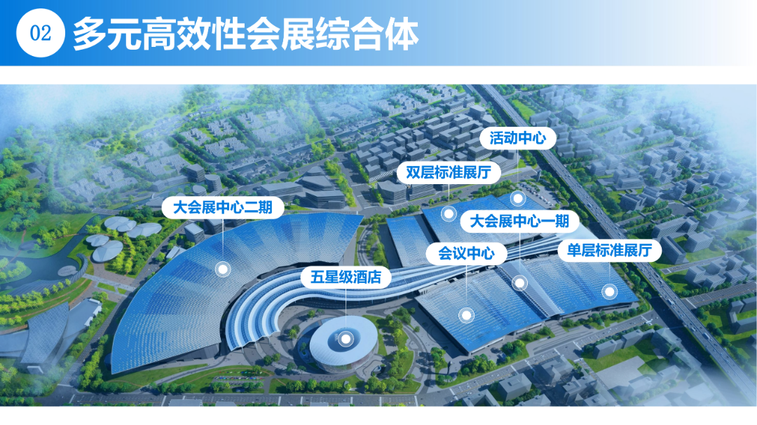 7000方超大会议厅、可容纳7000人以上的阶梯式活动中心、拥有350间客房的四星级标准的假日酒店、公交枢纽、农文旅产业园、会展商业街区……充分满足大型会展项目需求。