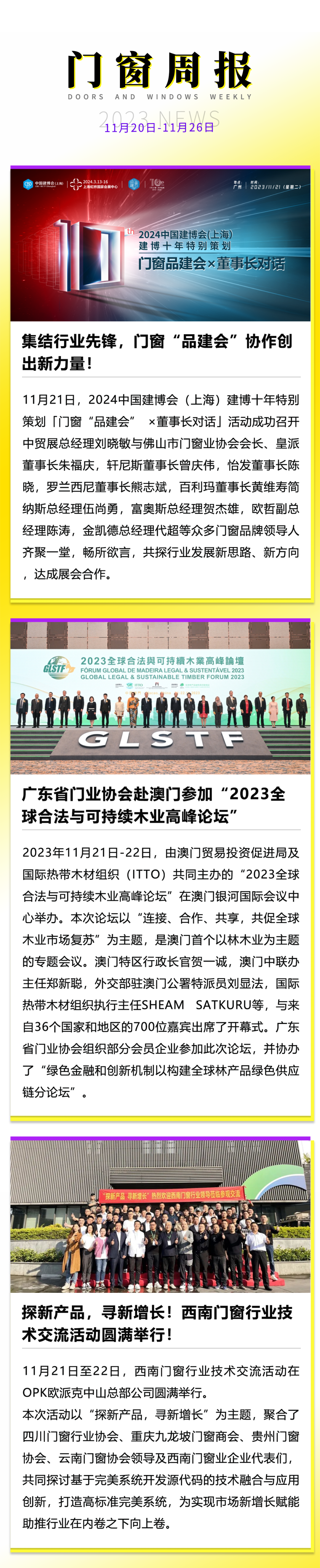 门窗周报|2024中国建博会(上海)门窗品建会;2023酷家乐门窗行业活动;2024定制家居主题发布(11.20—11.26)