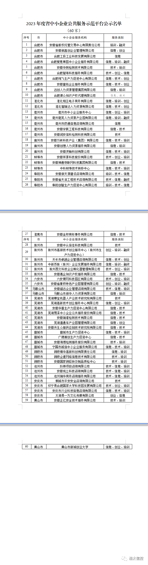 附 件:2023年度安徽省中小企业公共服务示范平台公示名单
