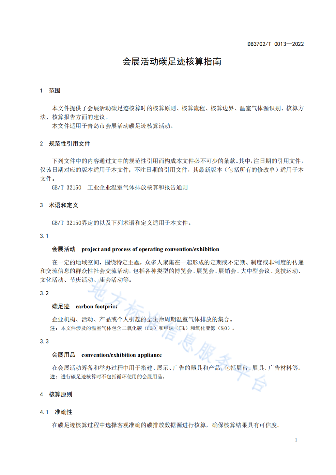 《会展活动碳足迹核算指南》提供了会展活动碳足迹核算时的核算原则、核算流程、核算边界、温室气体源识别、核算方法、核算报告方面的建议,适用于青岛市会展活动碳足迹核算活动。
