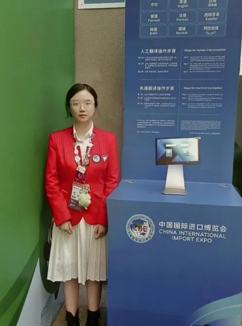 在志愿者培训中,我们用脚步丈量场馆,走遍了场馆每一个角落,熟悉了场馆结构,针对性参加了翻译志愿者培训,对翻译处工作有了较为深入的了解和认识。在志愿服务期间,我始终秉承着无私奉献的初心和使命,为进博会贡献自己的力量——当外国友人对场馆路线感到疑惑时,我主要负责提供英语翻译,并根据现场翻译需求,辅助展客商及参会人员使用同传翻译机,对有关不同场馆方位、职能的相关问题提供指引服务。这不仅锻炼了我的英语口语能力,也提高了人际交往、沟通能力。在空闲时,我也积极体验各个展区的魅力,感受到不同文化之间的交流碰撞,我看到了食品及农产品展区的琳琅满目,看到了消费品展区的热闹非凡,也看到了医疗器械与医药保健展区的高科技产品,所有的一切都让人印象深刻。