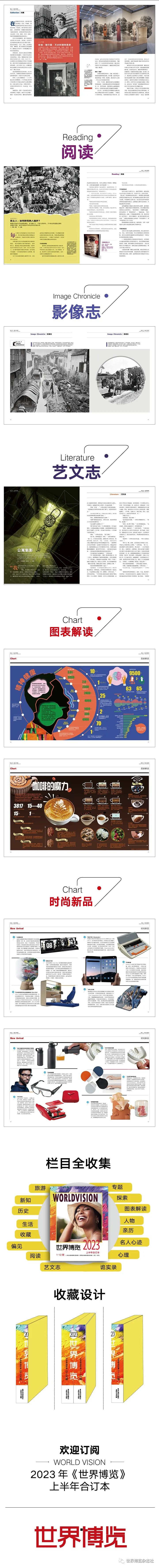 《世界博览》半月刊由外交部主管。作为一本蜚声中外的世界文化报道杂志,从1984年创刊以来,有着广泛的读者基础,伴随着一代代的少年、青年成长和走向成熟。《世界博览》以全球视野为国人“扫描”科技发现、人文新知、风土人情、旅游目的地、酒店与奢侈品等诸多领域的新鲜内容;围绕国人最为纠结的热点难点问题,提供以古喻今的历史记忆、军事内幕、名人的际遇与命运等,由采编精英团队策划、采写,并通过故事和内幕性的报道,及时、权威地为中国读者开启国际视窗。《世界博览》是一本畅销杂志,但畅销不是我们唯一的目的,我们希望以内容的广阔和深厚,以杂志的趣味和价值,影响这个世界。每一本《世界博览》都是印在纸上的灵魂,只有通过你的眼睛,它才能鲜活起来。主要栏目有:专题、偏见、旅游、探索、新知、心理、诡实录、娱乐、人物、名人心迹、收藏、见证、阅读、艺文志、环球掠影、时尚精品、国际资讯、影像志。