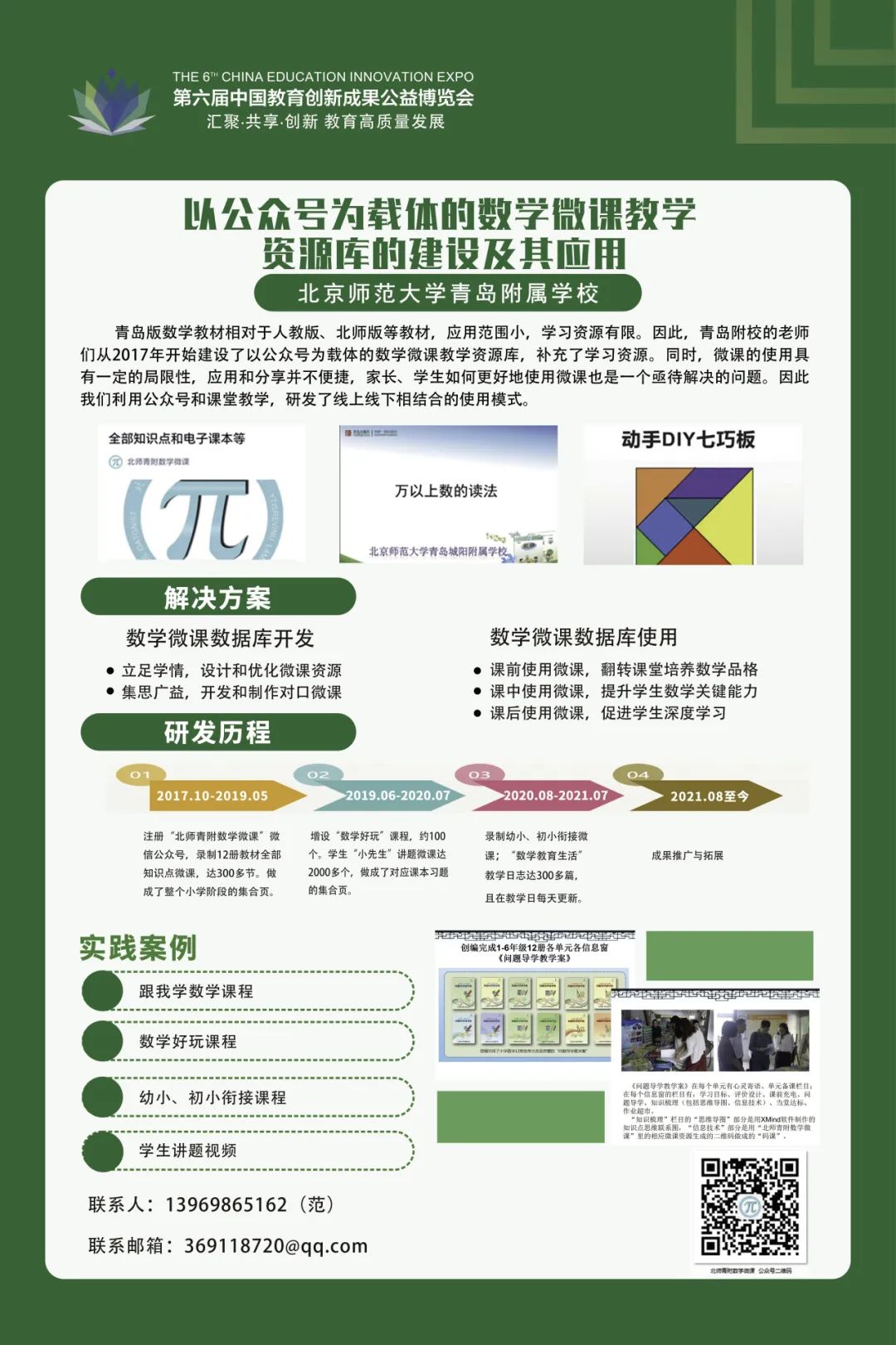 我校数学团队把小学数学12册教材全部知识点均录制成微课并上传到“北师青附数学微课”公众号。逐步发布了学生讲题微课2000余个,对应教材课后习题编辑成集;作为九年一贯制学校,我们还特意录制了30多节“初小衔接”和10多节“幼小衔接”课程,有效扩大受众群体;2019年增设“数学好玩”栏目,包含“数学节”、“好玩的课程”、“实践活动”、“趣味题”4项,充分激发学生学习兴趣。“北师青附数学微课”由于其资源的系统性、微信平台应用和传播的便捷性,被山东省多地用户乃至全国多地用户使用。这也给出一个可操作可借鉴的范例:以一个学校教研组的力量,经过坚持不懈地积累和优化,可以构建成特别好用的资源库,不仅这个学校的师生受益,还能与他人共享。我们将不断丰富公众号内容,持续探索微课新模式,为小学数学教育贡献北师青附力量。