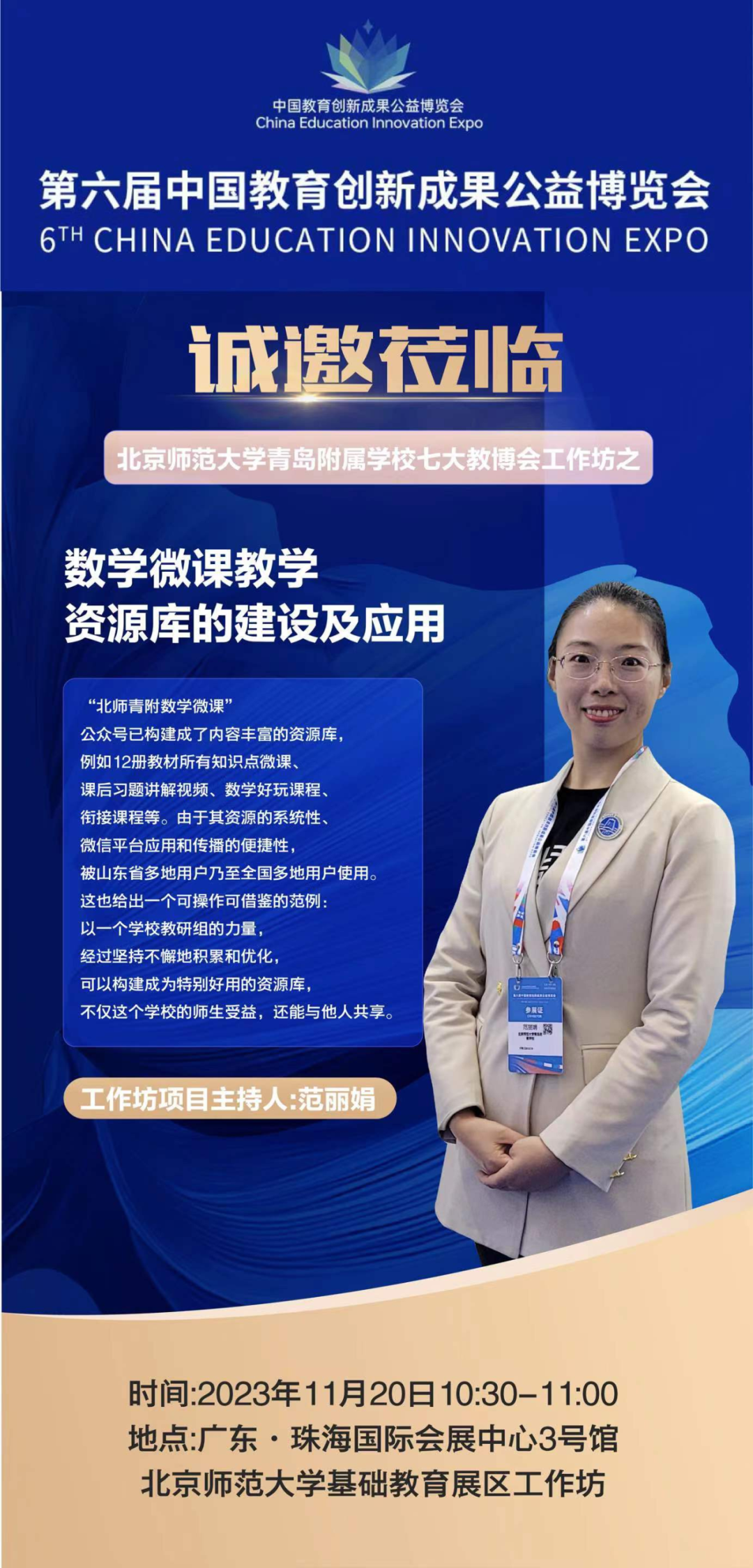 范丽娟老师在教博会上做了“以公众号为载体的数学微课教学资源的建设及其应用”工作坊,特邀2022年国家基础教育教学成果奖二等奖成果持有人陈燕虹老师等名师来参与交流。嘉宾们对我校数学组坚持研究和积累纷纷表示赞叹,对我校的数学微课、问题导学教学案、3D打印开发的学具等,都很感兴趣。