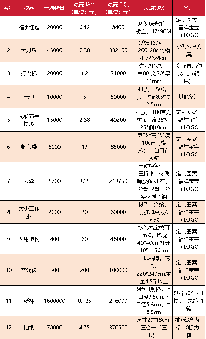 3、湖南茶陵农村商业银行股份有限公司2024年宣传用品采购项目报价单。(报价单要求经投标单位法人签字并加盖公章,每项品类报价不得高于第六条中该品类的最高报价,否则视同放弃竞标)