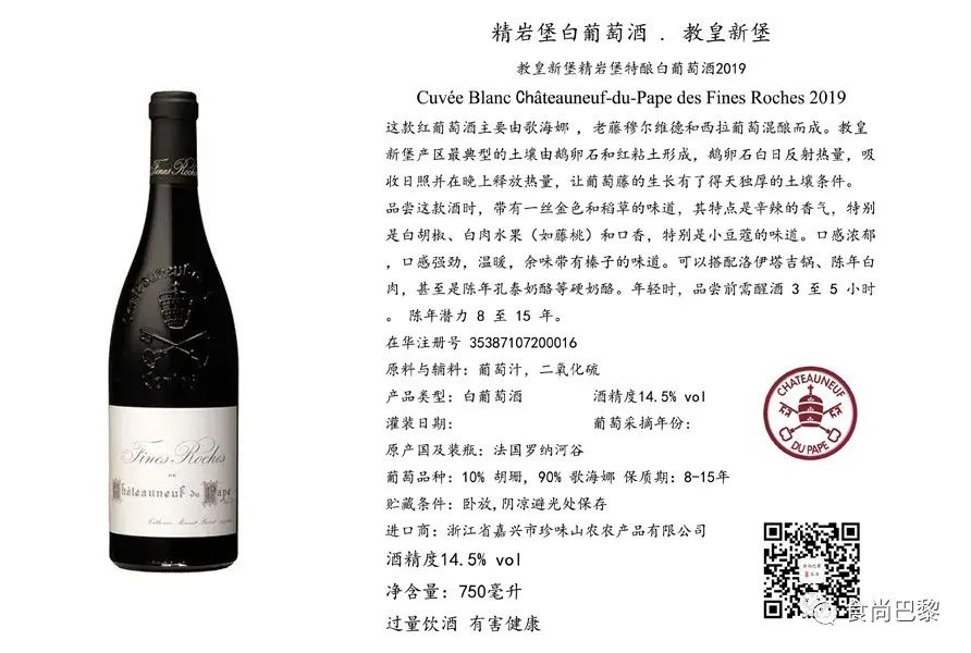 品尝这款酒时,感受到的是金色稻草的香味,有特别的辛辣的香气,白胡椒的味道尤其突出,也带有白肉水果(如藤桃)和花香,特别是小豆蔻的香气。