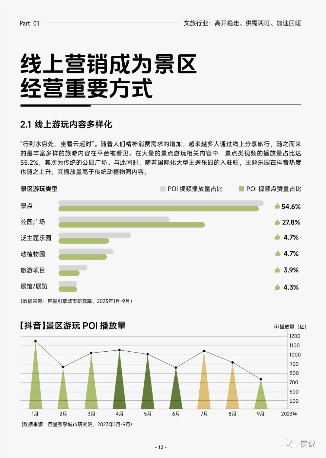 抖音平台作为记录美好生活的平台,大量的旅游故事也在平台被记录,今年前三季度,抖音平台旅游相关视频播放量累计达 9264 亿次,收获 252 亿次点赞。
