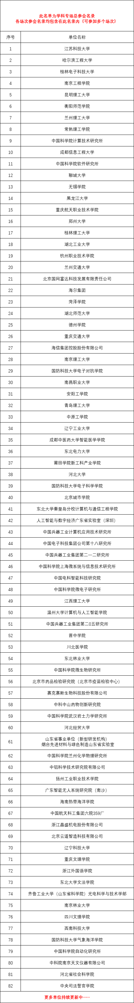 全国各地方政府、各省市高校、科研院所及国内重点行业知名用人单位,参会总名录如下(可参加多个场次):