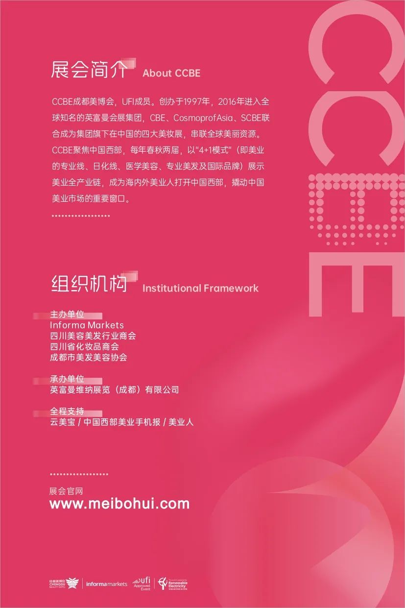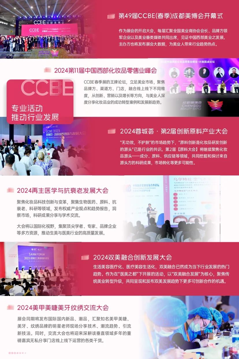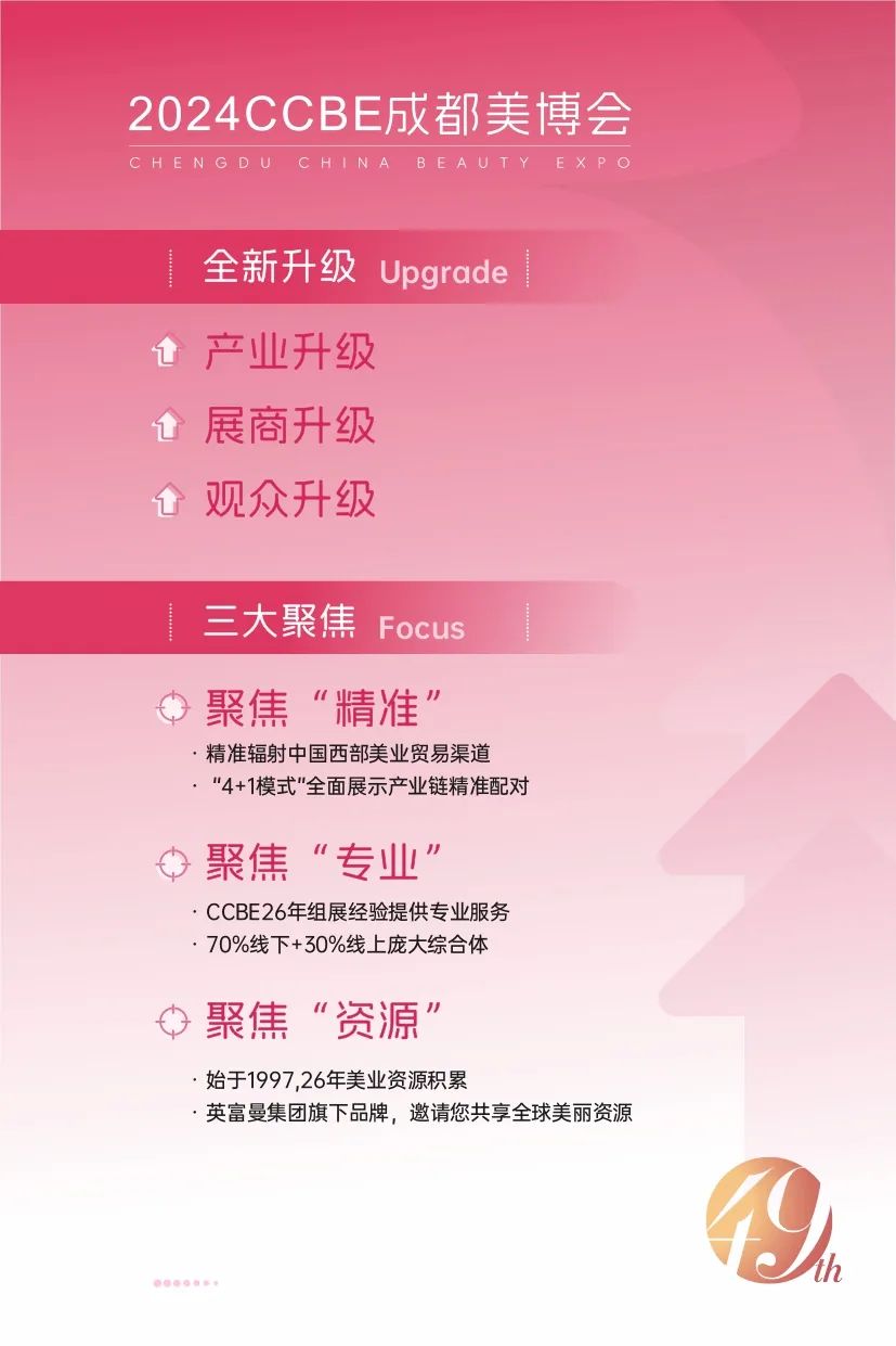 早在上届秋展还未结束之时,小美便收到了不少关于下届春展的咨询,更有不少优质展商早早敲定了中意展位。目前,2024第49届春季成都美博会展位预定正在进行中,如果您也想要开拓中国市场,抢占中国西部美业商机,那么,CCBE成都美博会将是您的不二选择!