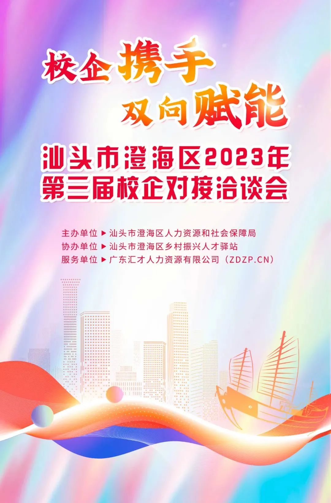 为贯彻落实党的二十大精神,围绕汕头市委、市政府“工业立市 产业强市”发展要求,搭建政、校、企合作交流平台,拓宽人才培育开发和引进渠道,促进企业人才需求与院校毕业生供给的精准匹配,服务经济高质量发展,汕头市澄海区人力资源和社会保障局将于12月15日举办“汕头市澄海区2023年第三届校企对接洽谈会”,邀请省内外高等院校、博硕士、本科及大中专、技校、职校与澄海区企业深化“政、产、学、研”合作,促进重点用工企业技能型人才引进、高校毕业生招聘、三项工程供求对接等产业人才培养,助力经济高质量发展。