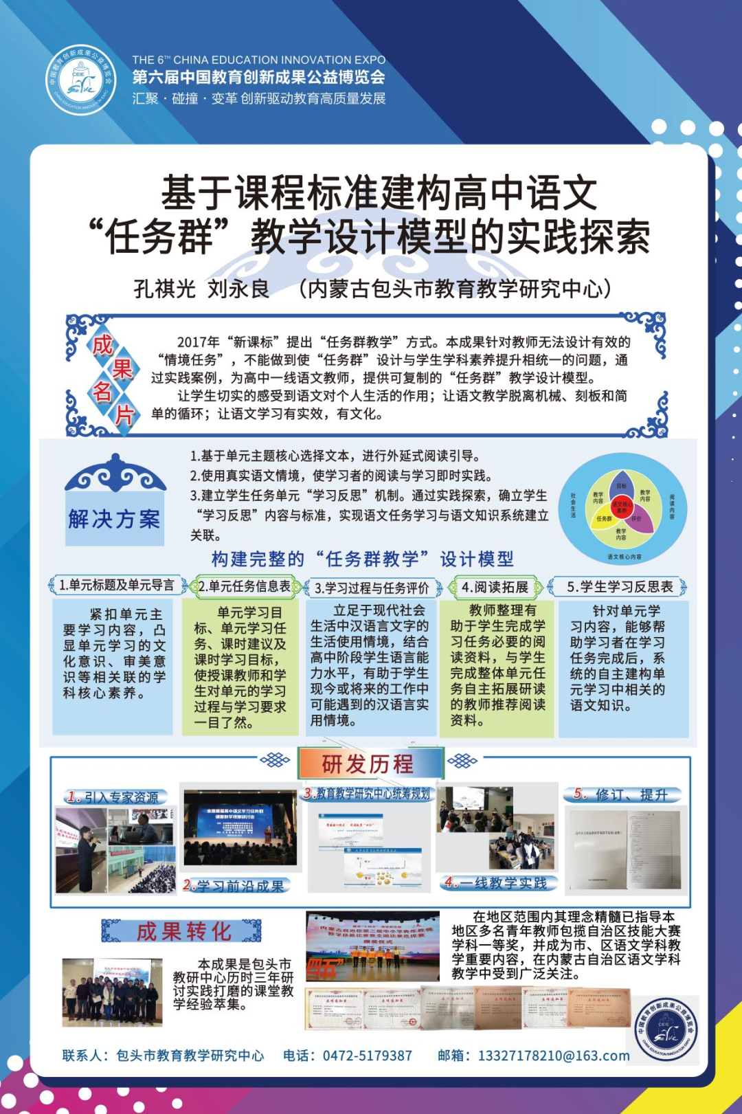 包头市第三十三中学刘永良老师与包头市教育教学研究中心孔祺光老师领衔主持,我校与包头市教研中心合作完成的“基于课程标准建构高中语文任务群教学设计模型的实践探索”科研项目亮相本次教博会。包头市本次有三个项目受邀参展,其中我校与教研中心合作的项目是三个项目中唯一一个与学科教学有关的参展项目。