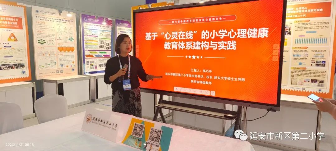 11月18日至21日上午,延安市新区第二小学以“基于心灵在线的小学心理健康教育体系建构与实践”为主题的创新成果在珠海国际会展中心1号馆陕西展区展出,充分展现了我校心理健康教育体系的探索和实践历程。
