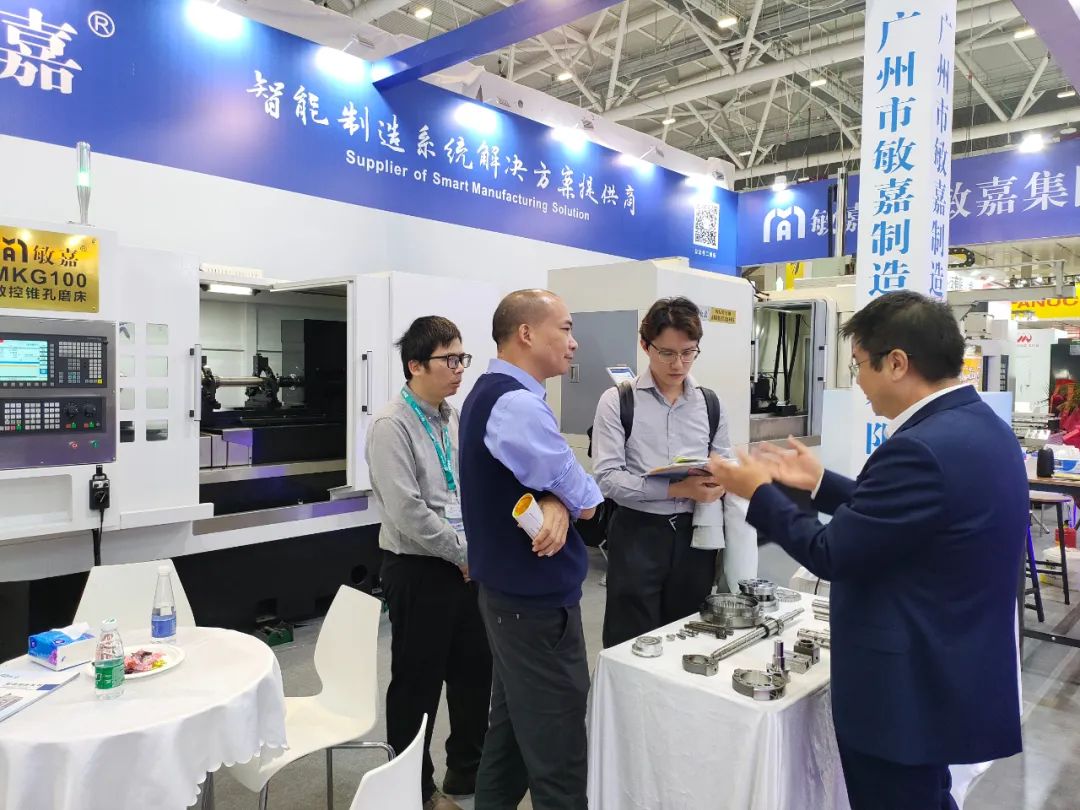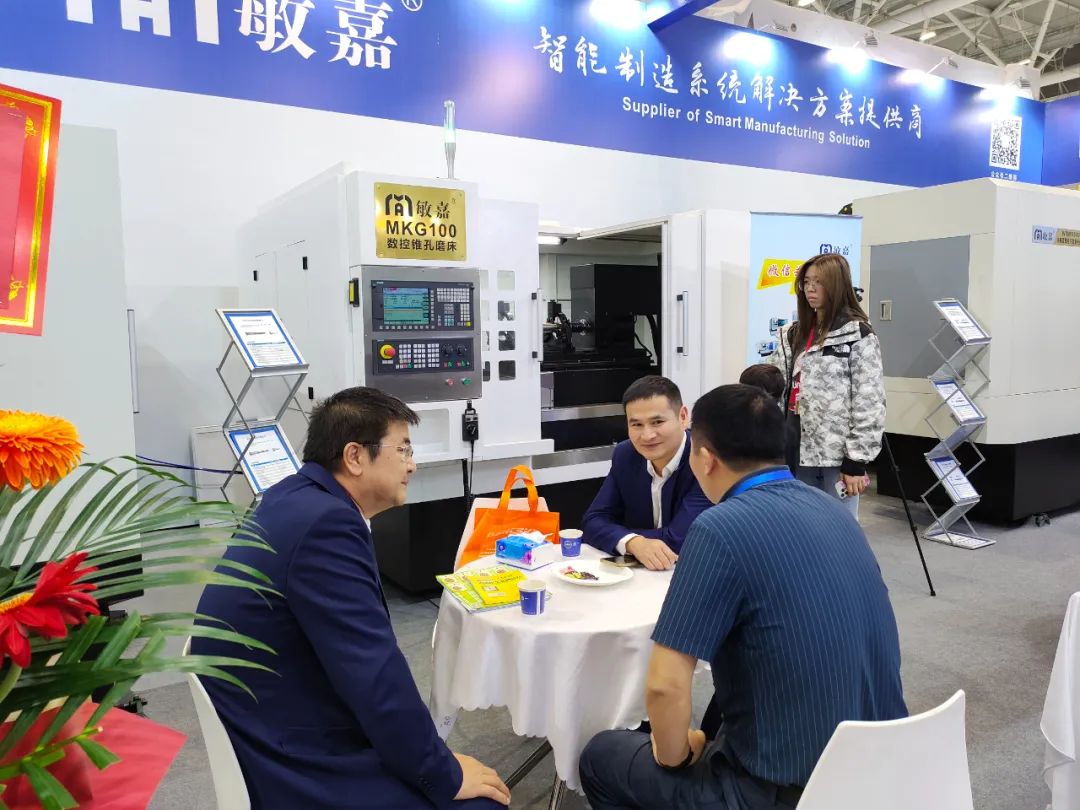 敏嘉公司经过精心准备和筹划,携带精密复合磨床:WNM1510数控万能磨床、SMK304数控复合磨床、MKG100数控内孔磨床在第7展厅H25参展。该展厅汇聚了德玛吉森精机、发那科、马扎克、STAR、北京精雕、创世纪、汇专、庆鸿、润星、西铁城等国际化高端品牌机床。开幕式后,敏嘉公司展位迎来了一波又一波的观展商前来咨询、了解机床性能及技术优势。