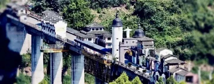 美心红酒小镇,小镇内欧洲小镇建筑与雕梁画柱、青砖石瓦的中式古镇隔溪相望,拥有鸡公山游乐园、香溪廊桥、梨香溪水上乐园、西普陀等众多旅游景点及自然风光。