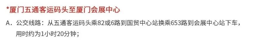 公交:从T3候机楼站乘坐空港快线曽垵路公交车到会展中心站下车,用时约60分钟;从T3候机楼站乘坐观音山营运中心方向91路公交车途径28站至明发新城站下车,步行390米抵达厦门国际会展中心