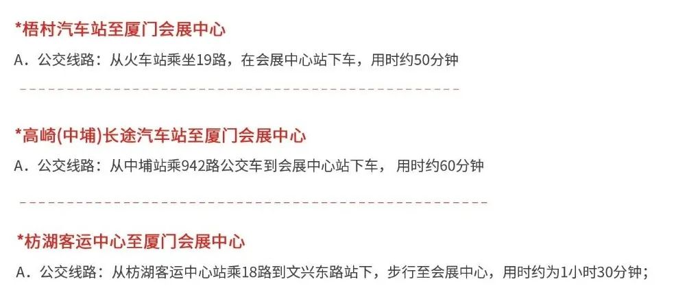 公交车:在厦门北站(始发站)乘坐949路车途径29站,到达明发新城站,下车步行406米到达厦门国际会展中心