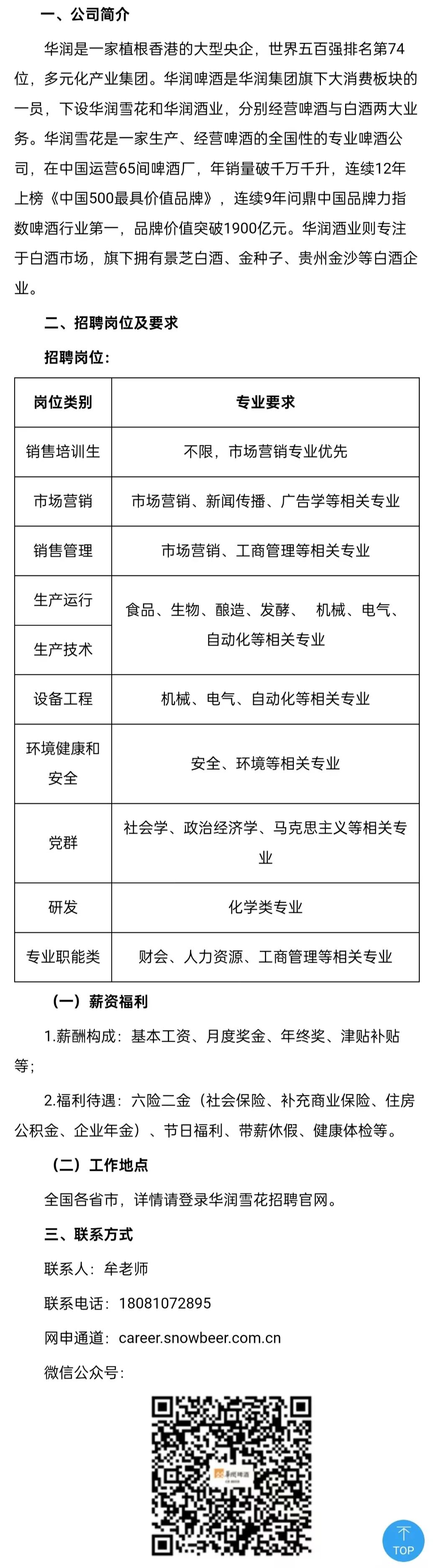 【校园招聘】华润雪花啤酒(中国)有限公司