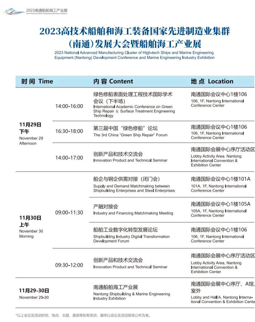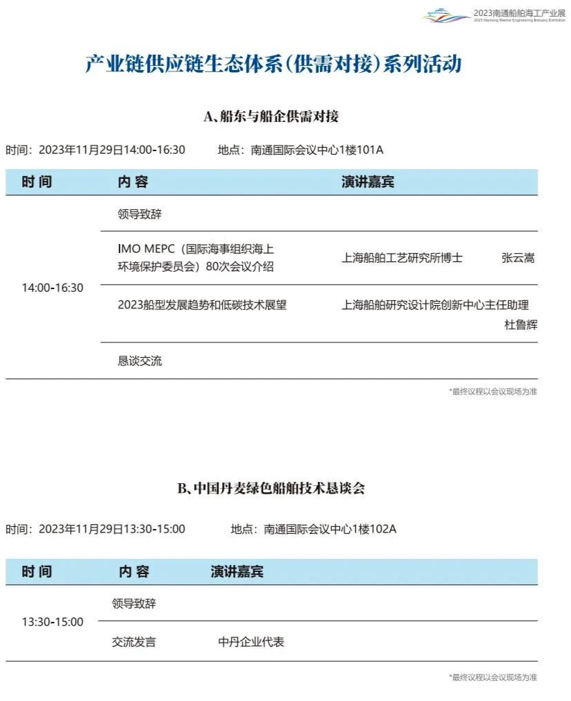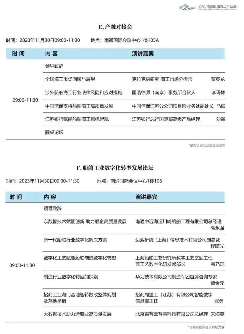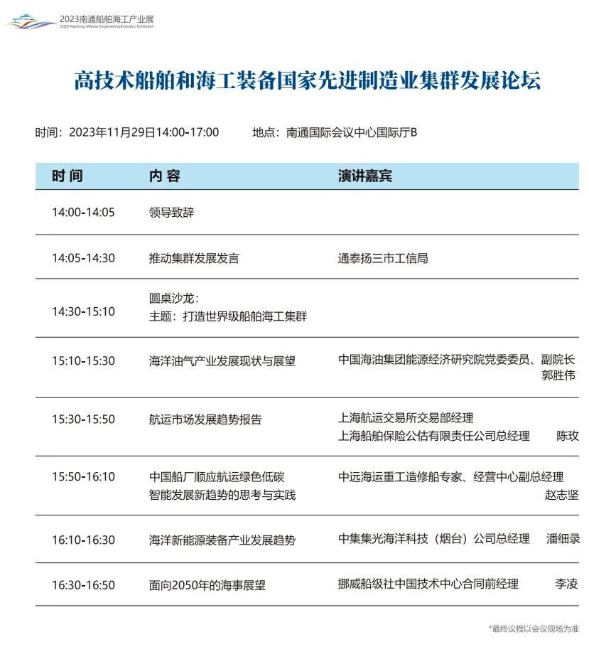 大会同期举办2023南通船舶海工产业展,设立通泰扬集群成就展区、通泰扬展区、国际化展区、服务业展区、产业链配套展区、活动演示区等,来自国内外的200多家船舶海工配套企业和服务商,以产品、技术及服务的创新升级,助力产业深度融合。
