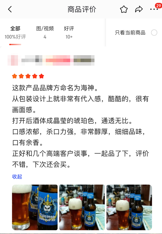 “不仅口感,包装设计上也非常有代入感,酷酷的,还有大航海时代的神秘感。”“口感醇厚、麦芽浓、品质高、价格值!!!”在刚刚过去的双十一,收到青岛啤酒IPA的消费者纷纷打出五星好评。