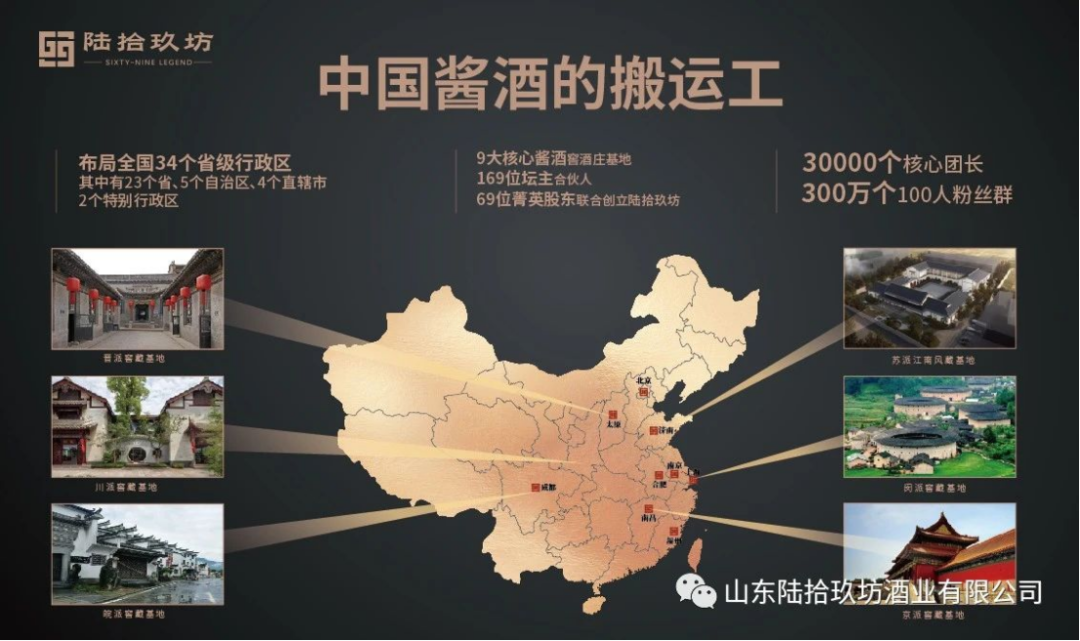 2023年陆拾玖坊酒业公司现已完成中国山东省菏泽市壹号酒庄窖藏文旅基地的规划设计,规划在5年内布局中国九大核心酒庄窖藏基地,集酱酒储存、文旅、供应链、酱酒文化于一体的城市级酱酒窖藏存储交易中心。