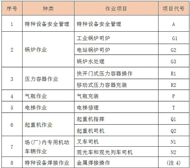 市场监督管理局特种设备操作证作业种类与项目