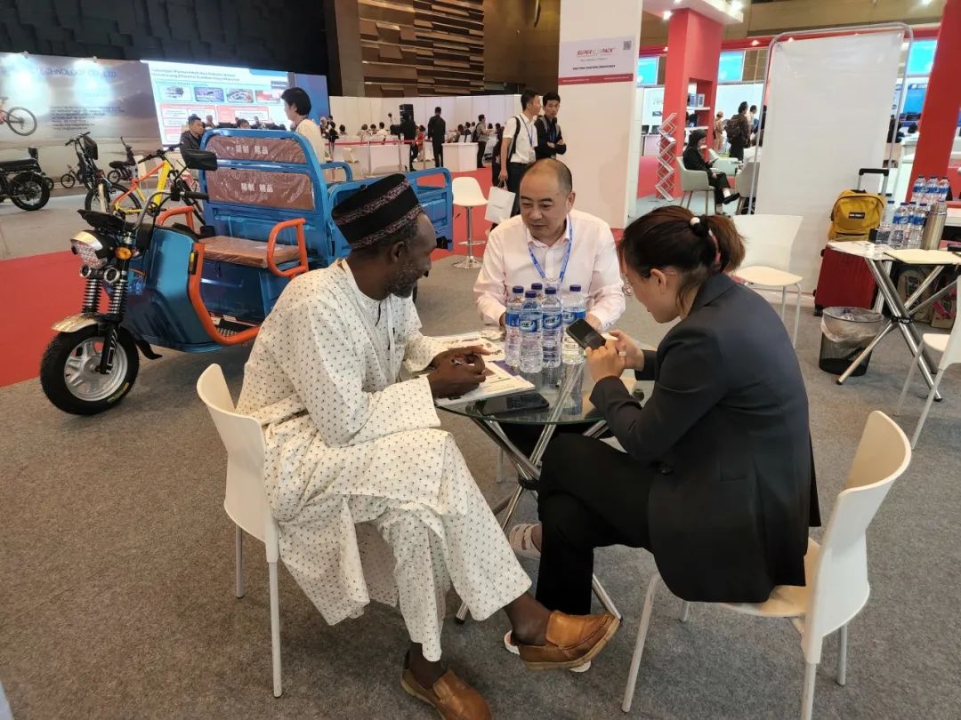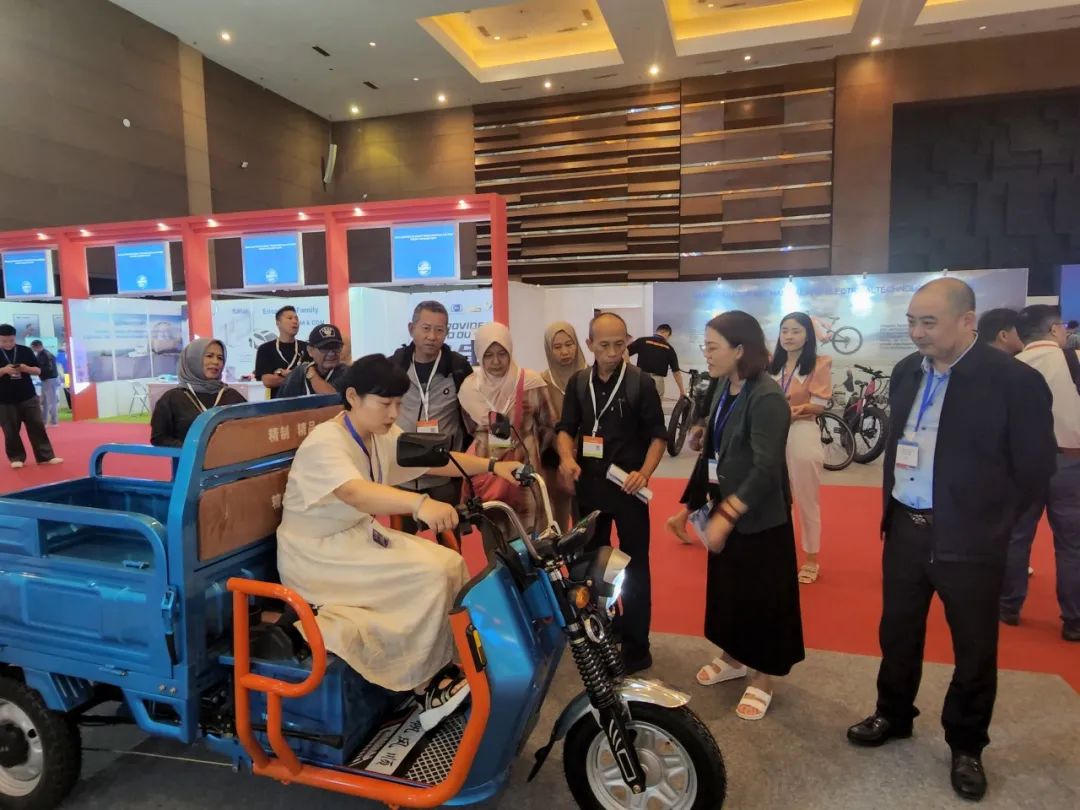 唐山市江苏商会--南通欣利嘉跨境电商产业园抓住此次机会,积极拓展和深耕印尼市场,不仅斩获了可喜的签单,更在本次出海贸易中带来了让海外客商们夸口称赞的电动车产品, 为前来的客户详细介绍产品的特点及优势,让每一位客户在展会现场体验高效产品和优质服务。