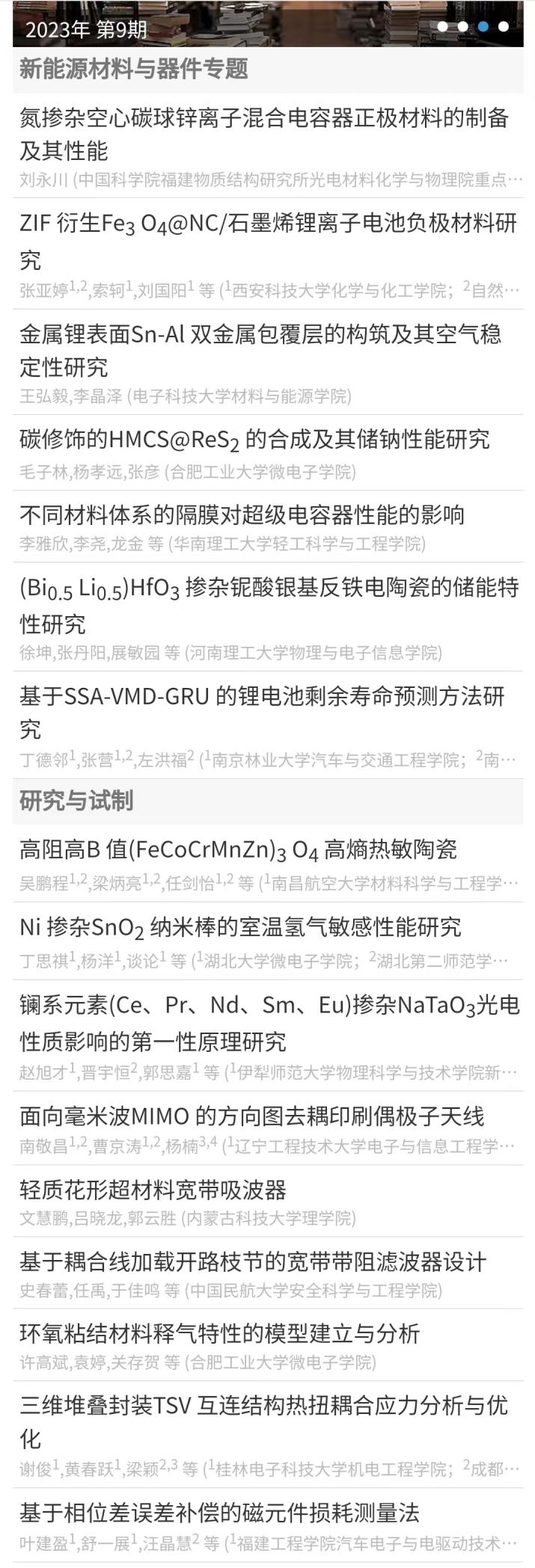 简介: 《电子元件与材料》创刊于1982年,月刊,系中国电子学会会刊和中国电子元件行业协会会刊,是国内外公开发行的学术刊物。《电子元件与材料》由工业和信息化部主管,国营第715厂、中国电子学会、中国电子元件行业协会共同主办,中国电子学会元件分会和电子科技大学电子科学与工程学院协办。主要栏目设置有:研究与试制、科技动态、专家论坛、企业之窗、博士论文、会议消息、新品介绍、产品导购等。