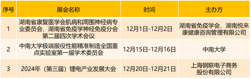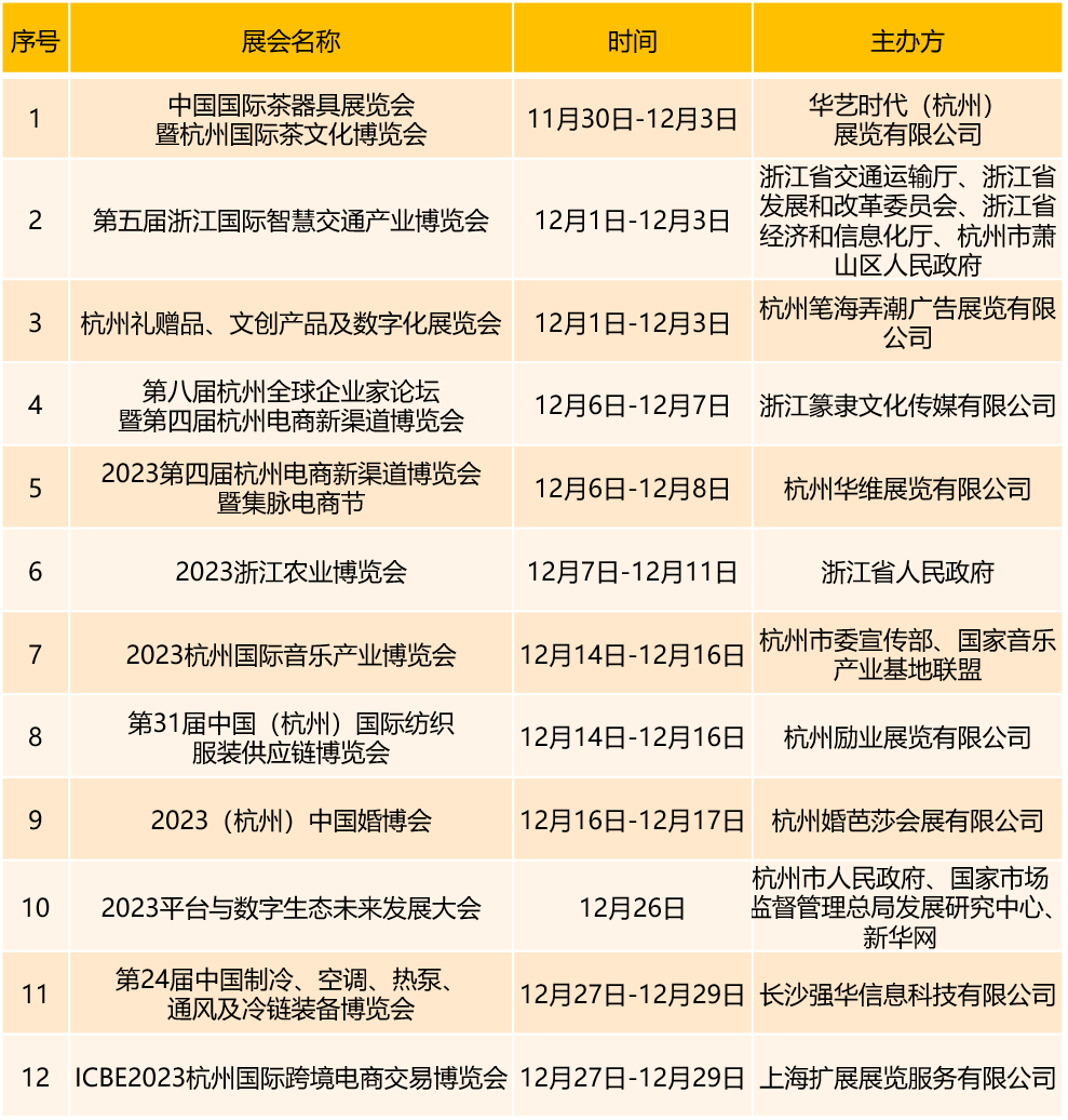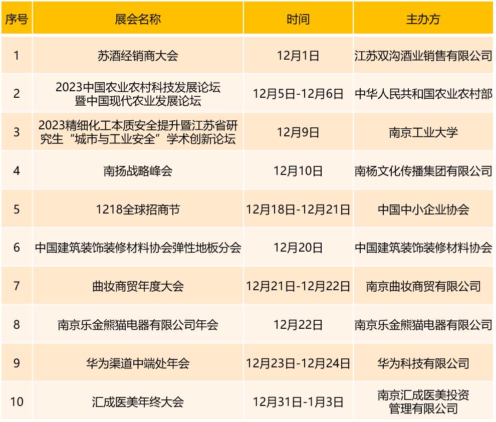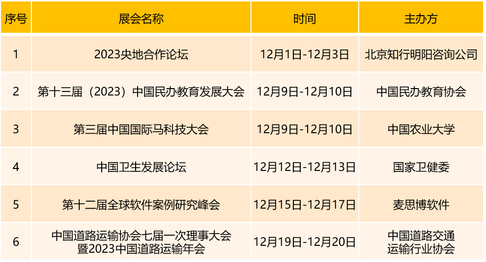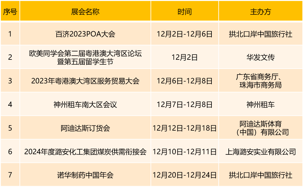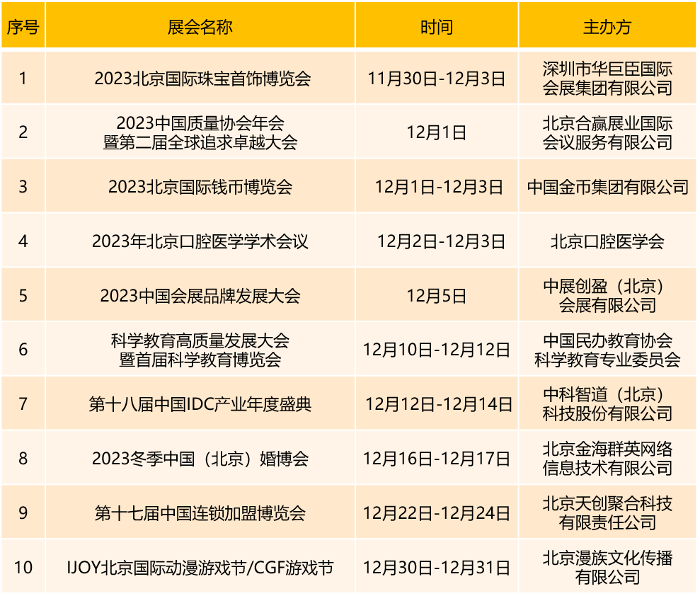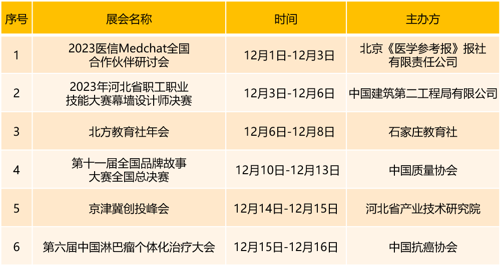 首都会展集团旗下场馆12月份展会安排