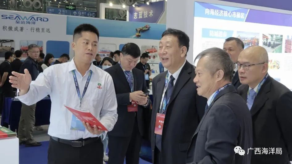 2023年11月23—25日,2023中国海洋经济博览会在深圳会展中心(福田区)举办。局党组书记、局长、一级巡视员谢瑾瑜率队参加2023中国海洋经济博览会开幕式,开展广西向海经济产业招商推介及产品展示活动。自治区海洋局组织南宁市北部湾办、北海市海洋局、防城港市海洋局、钦州市海洋局、玉林市北部湾办,以及中船广西船舶及海洋工程有限公司、广西北部湾国际港务集团等广西涉海企业代表参会参展。