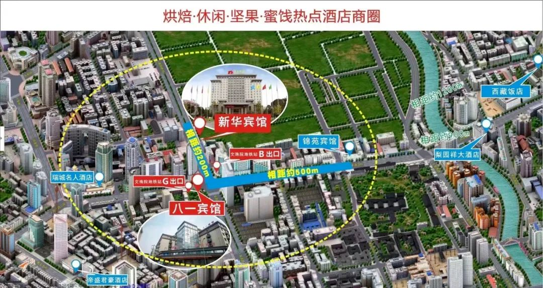 成都新华宾馆地处成都市中心,经过2017-2018-2019-2021-2022-2023年成都糖酒会,已成功将其打造成为备受参展商和经销商青睐的高端烘焙、休闲食品专区又一制高点: