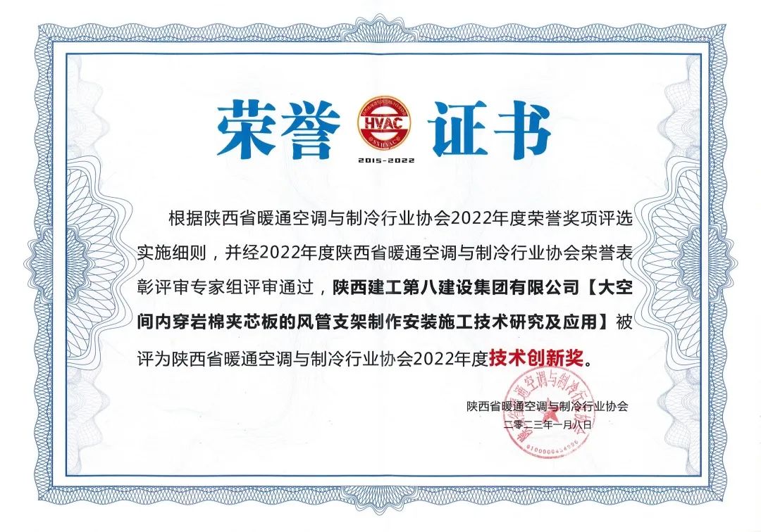 近年来,陕建八建集团注重科技创新,强化基础管理。设备安装工程公司按照集团统一部署,不断推进改革创新,在科技创新与新技术应用方面成绩突出,依托智能建造与工业化研发产业基地,在机电设备安装、暖通空调与制冷、BIM技术应用、工程深化设计等领域形成了一大批科研成果和核心关键技术。设备安装公司将继续紧跟国家产业政策与信息化、智能化发展方向,紧跟集团发展战略步伐,不断提升自主创新能力,增强科技成果转化力度,为集团高质量发展做出新的更大贡献。