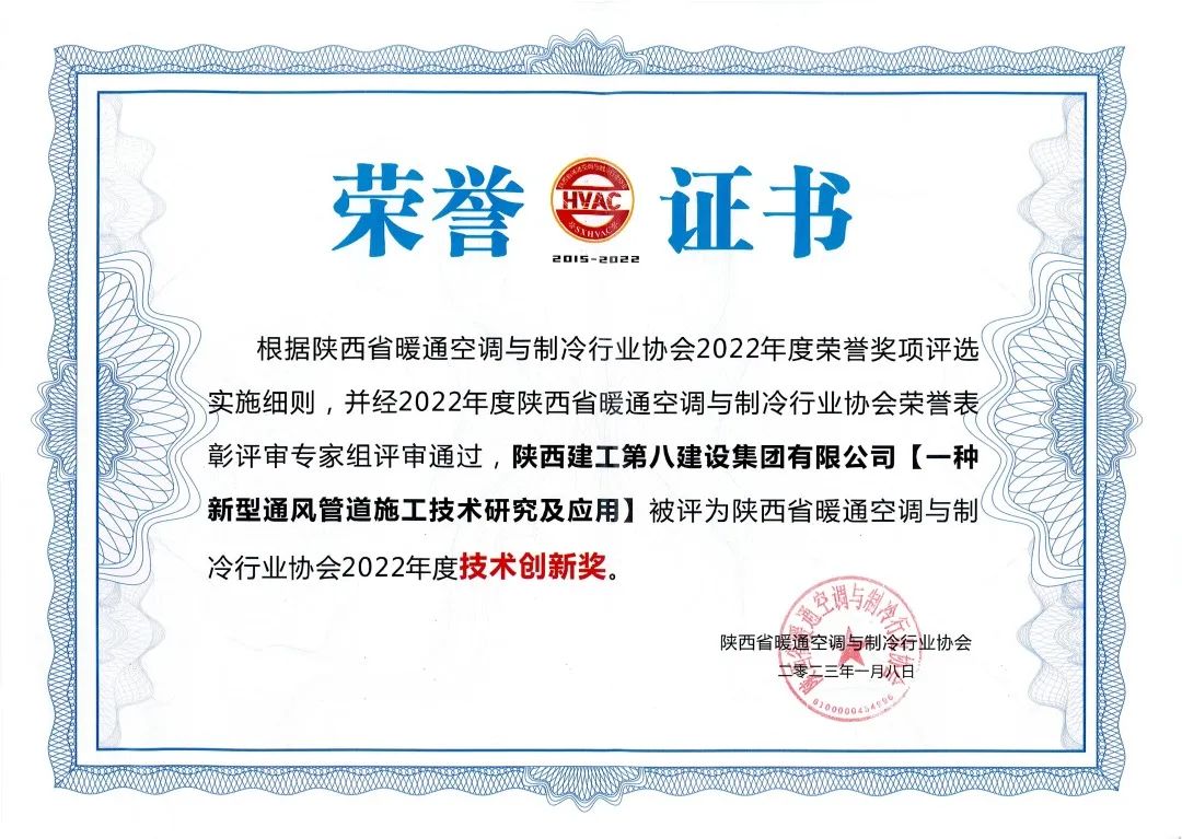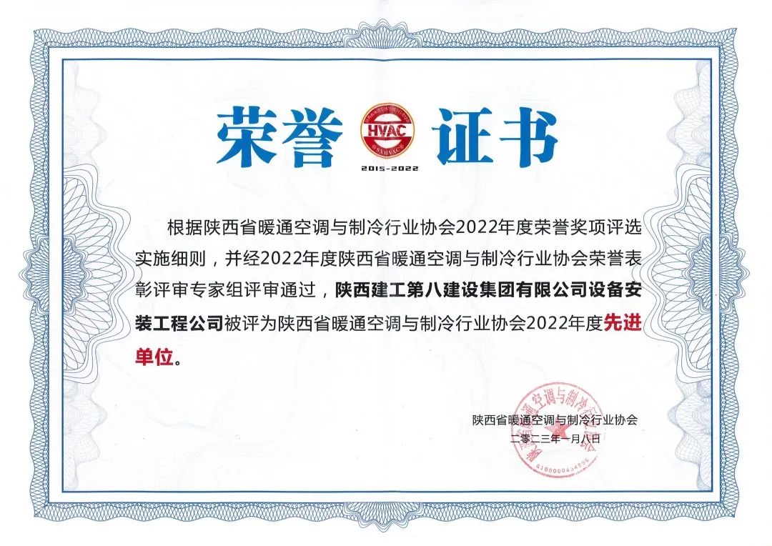 近日,在陕西省暖通空调与制冷行业协会2022年度会员代表大会暨荣誉表彰大会上,陕建八建集团设备安装工程公司一次获得6项荣誉,是所有获奖企业中获得奖项最多、获奖人数最多的单位。