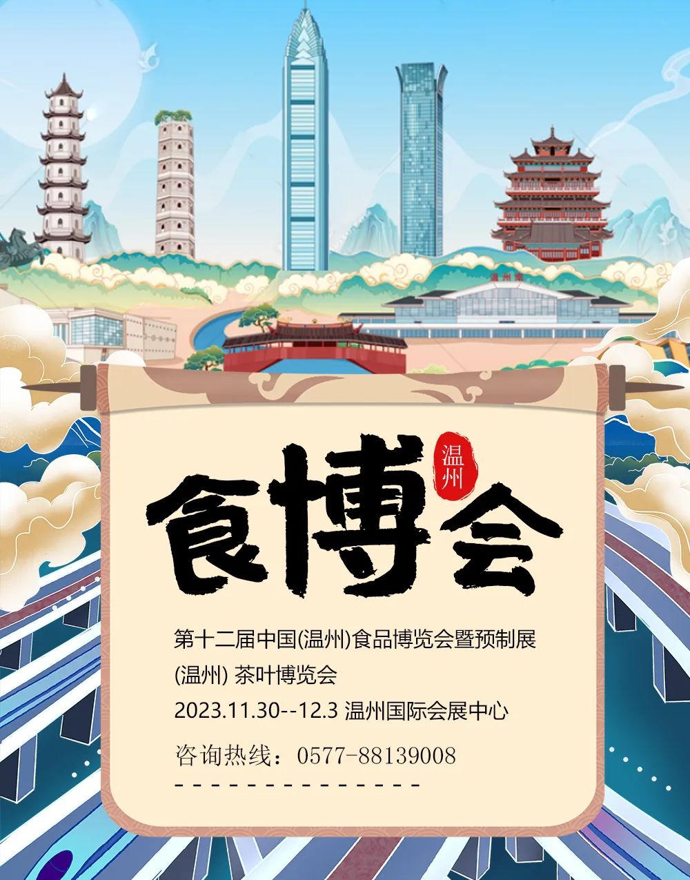 11月30日-12月3日,2023第十二届中国(温州)食品博览会暨预制菜展将在温州国际会展中心举行。此次博览会以“绿色、健康、时尚”为主题,汇聚200多家企业,分设5号馆食博会馆和2号馆茶博馆两大展馆,规模共计12000平方米。