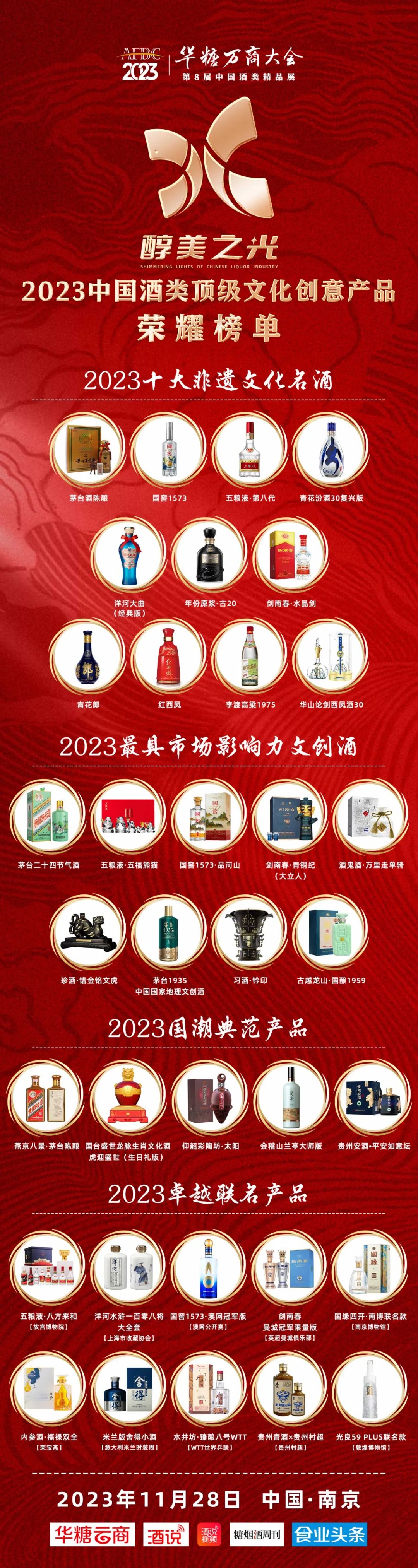 其中,“最具市场影响力文化酒”是指公开销售且具有一定市场规模,有较大品牌影响力,并对文创产品开发有启迪作用的产品;