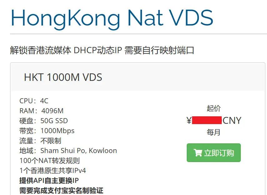 1个香港原生共享IPv4